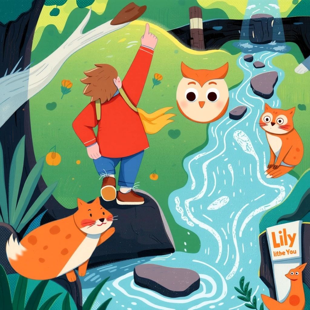 Following [Oliver](9HW63LMG)'s advice, [Andy](QJXNCXD7) listened carefully to the whispers of the wind, which led him to a glistening stream. There, he encountered [Lily](HZYY9GY2), a playful fox with bright orange fur, who helped him cross by showing him stepping stones.