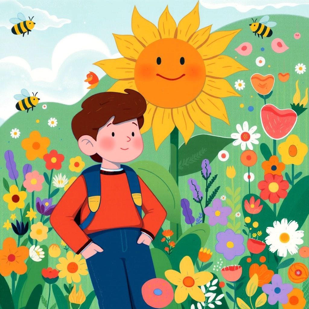 On the other side of the stream, [Andy](QJXNCXD7) found himself in a meadow filled with colorful flowers and buzzing bees. Standing tall was a giant sunflower named [Sunny](VBC2LPRF) who offered [Andy](QJXNCXD7) advice: 'Seek the highest peak, for there the feather rests.'