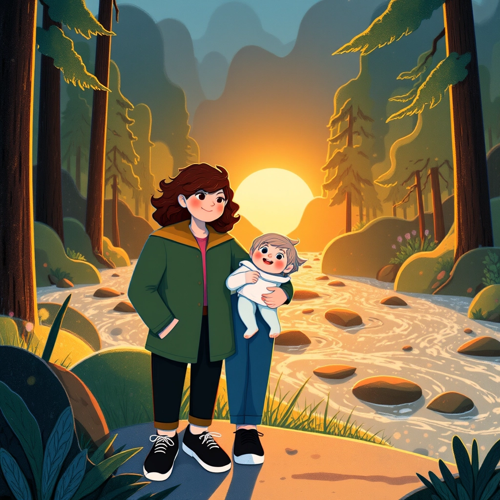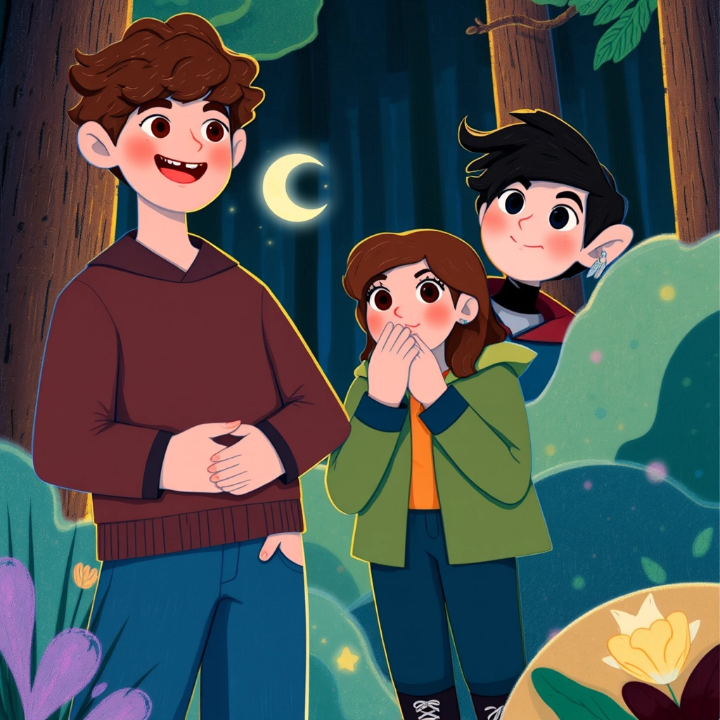They ventured deeper into the woods, discovering glowing mushrooms, dancing fireflies, and a bubbling black river that hummed softly like a song.