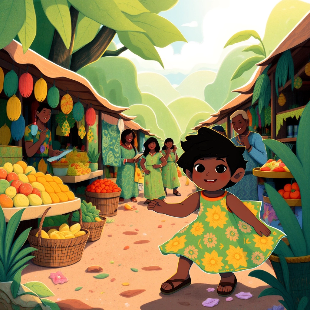 In a peaceful African village surrounded by swaying palm trees and rolling green hills, lived a curious six-year-old girl named [Anya](FLPMNCF3). [Anya](FLPMNCF3) loved to play in the sun and explore the vibrant marketplace with its colorful fruits, fabrics, and friendly faces.