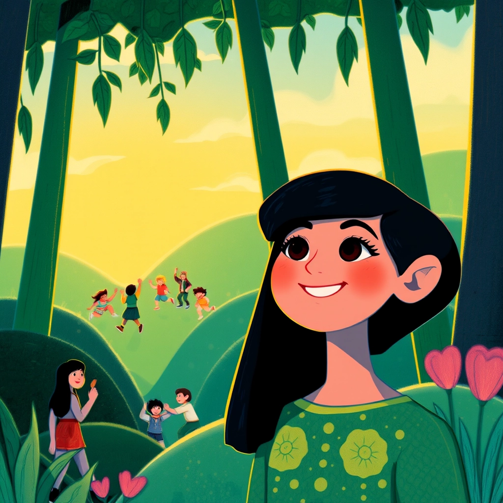 With newfound focus, [Anya](FLPMNCF3) could hear the natural symphony: a chirping bird, rustling leaves, and distant chatter of village children. 'It's like music!' she exclaimed.