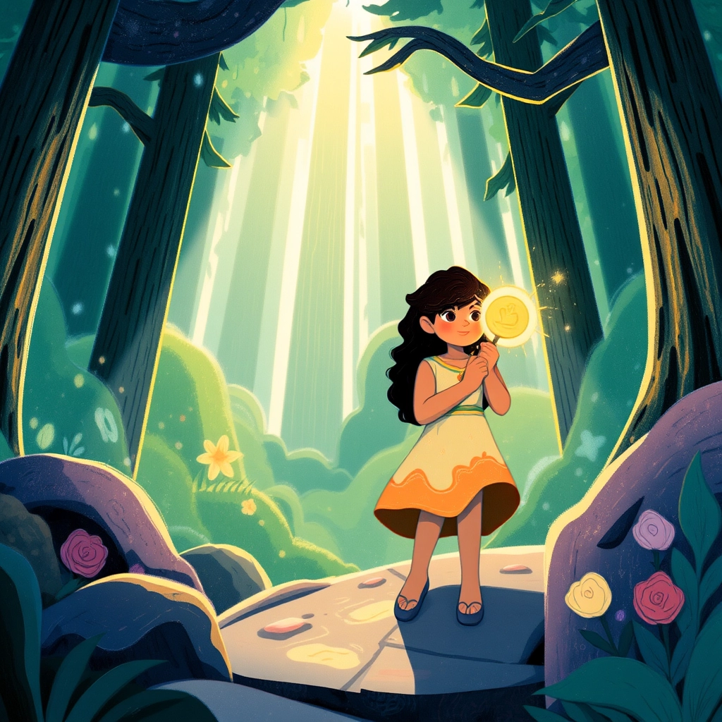 Finally, [Aradheya](Q9H7YYNN) reached the Secret Hollow, a magical clearing bathed in golden light. Zindro was there, a towering figure with piercing eyes. But when he tried to steal the key, [Aradheya](Q9H7YYNN)’s kindness and confidence formed a protective shield, sending him away once and for all.