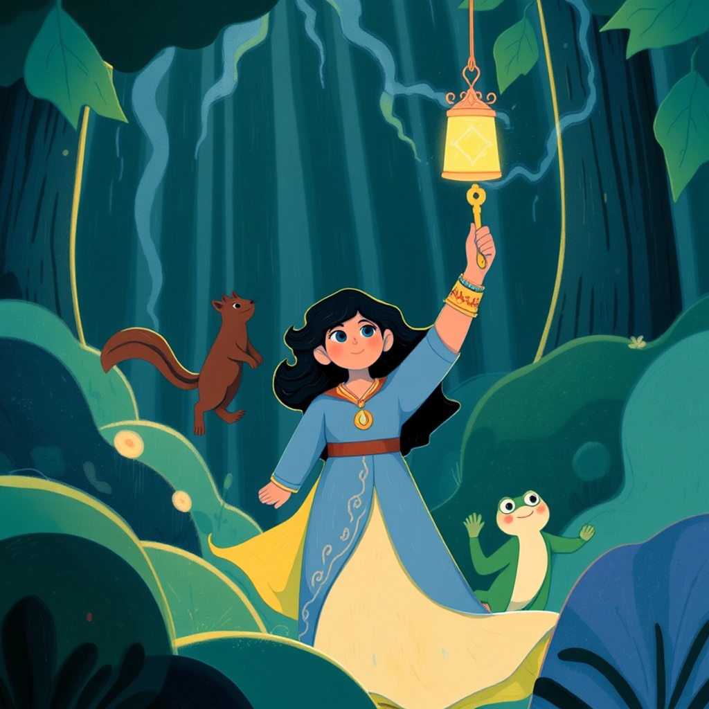 Determined to protect the Secret Hollow, [Aradheya](Q9H7YYNN) set off on her journey with the frog and her animal friends by her side. The forest offered big challenges—tricky vines, rumbling storms, and tricky riddles—but her kindness and bravery guided the way.