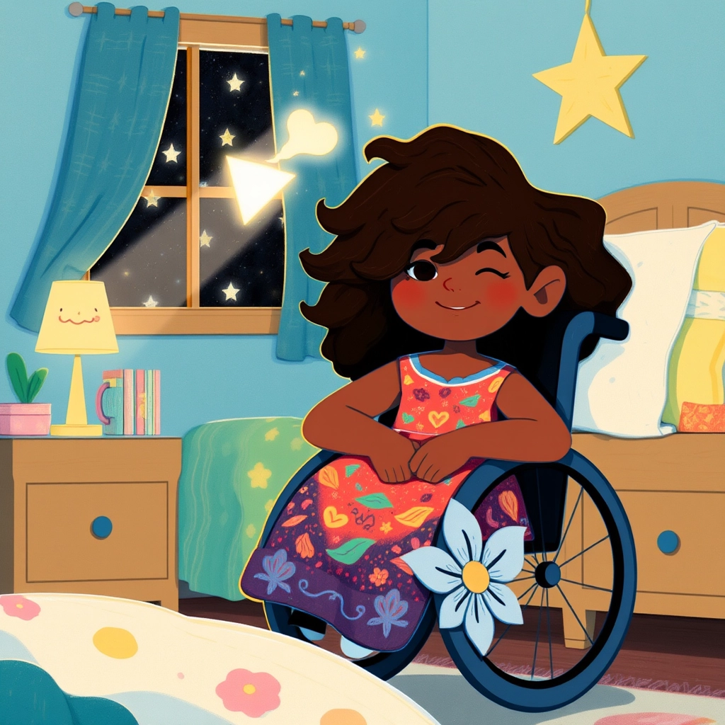 In bed that night, [Arellia](SYFDS9C2) whispered a silent thank you to her magical wheelchair. She smiled, knowing that as long as she embraced her uniqueness and shared her kindness, her world would always be full of light and adventure.