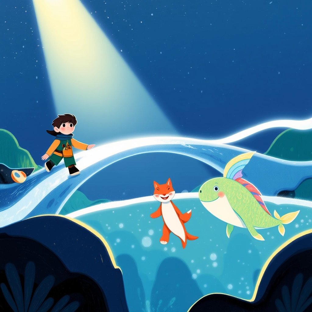 They reached a sparkling river guarded by a playful fish named [Glitterfin](PFCVKVZK). 'Answer my riddle, and I’ll give you a bridge,' [Glitterfin](PFCVKVZK) said.
