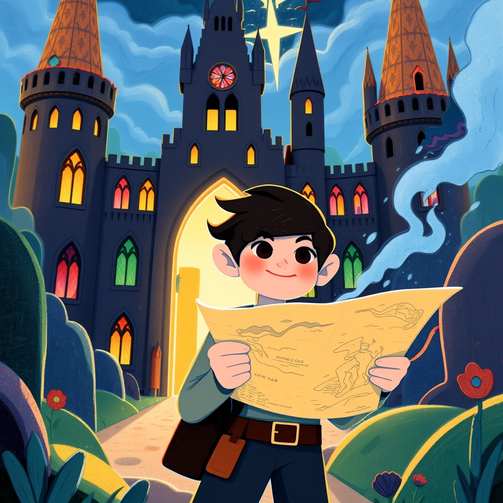 [Ari](FRGPQ2YJ) was a clever and adventurous boy with bright eyes and a heart full of curiosity. One day, he found an ancient map in his grandmother's attic that whispered, 'Find the Castle of Dreams.'
