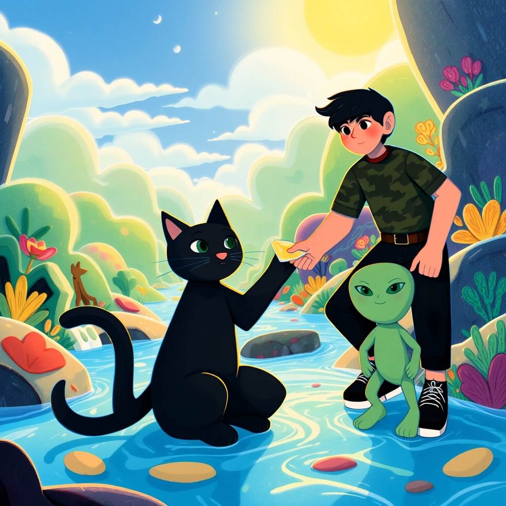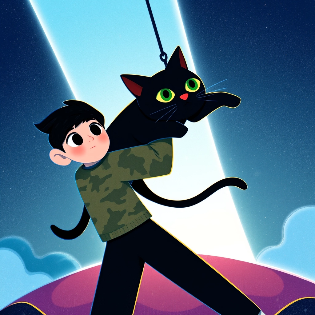 It was just another ordinary day for [Aron](2XPC9GWG) and his black cat [Barney](LCQ632LT). The two best friends were out exploring the big field behind [Aron](2XPC9GWG)’s house. Little did they know, their world was about to change forever.