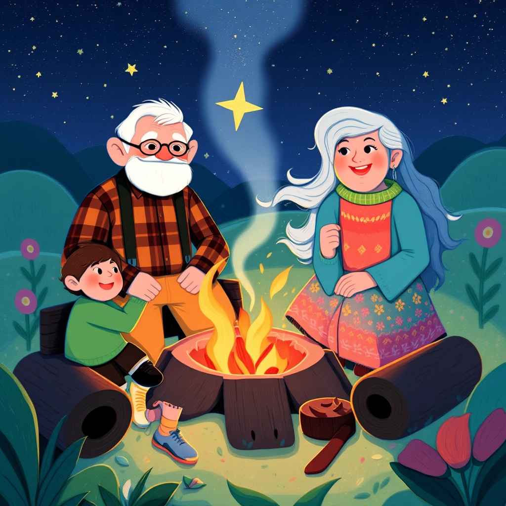As the sun set, [Granddad](DT7XCT9W) and [Nanny](5V4XMCQ6) set up a little fireworks show in the backyard. The kids cheered as bright colors lit up the sky.