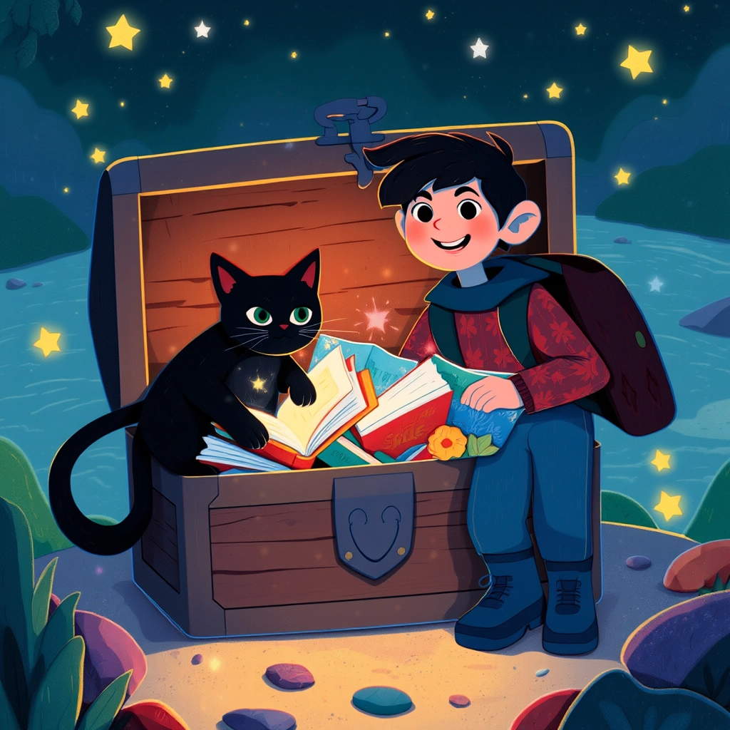 Inside the chest, they found not gold coins or jewels, but a collection of shimmering storybooks from around the world, each glowing with magical energy.