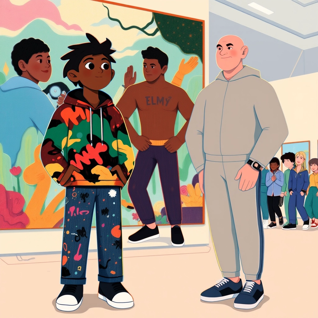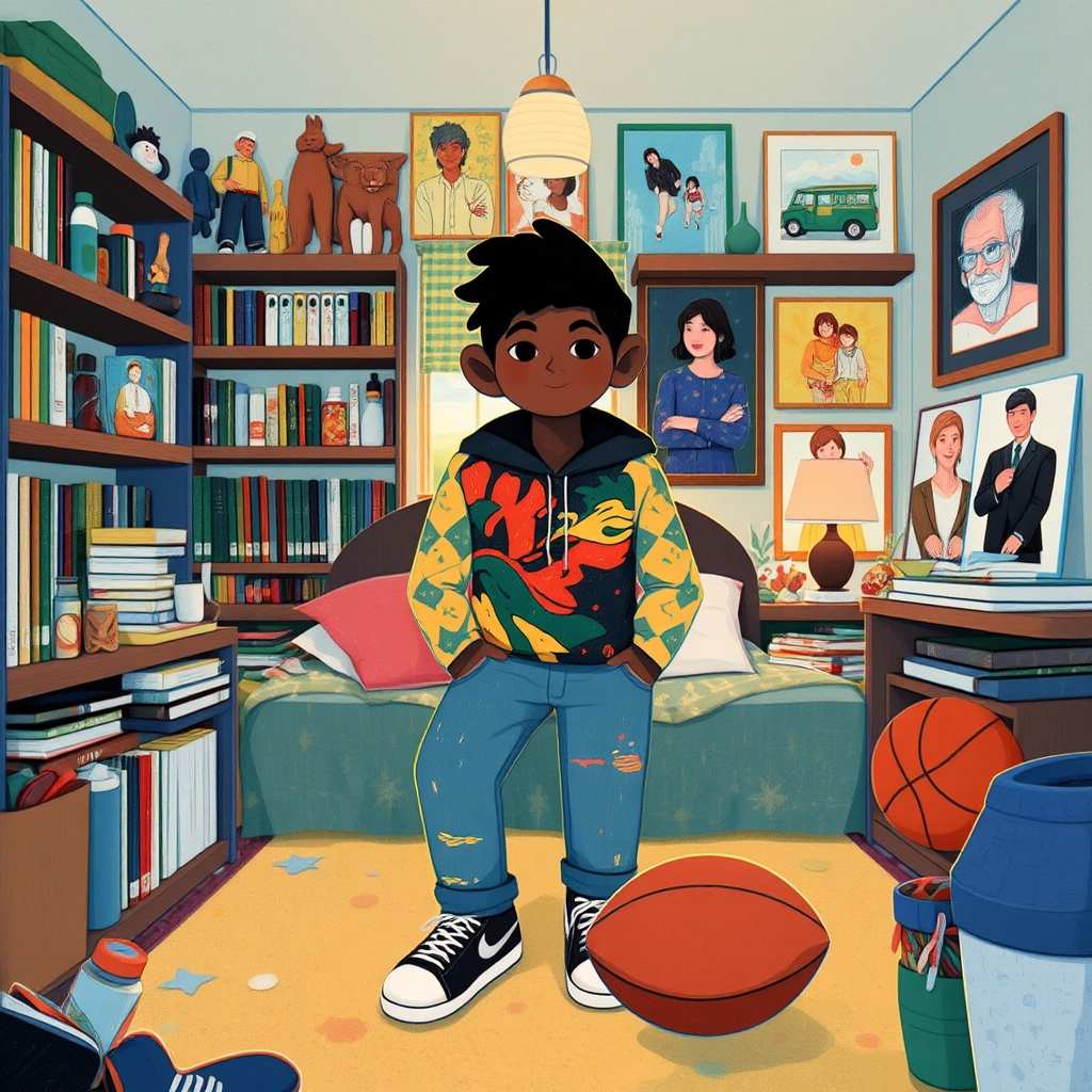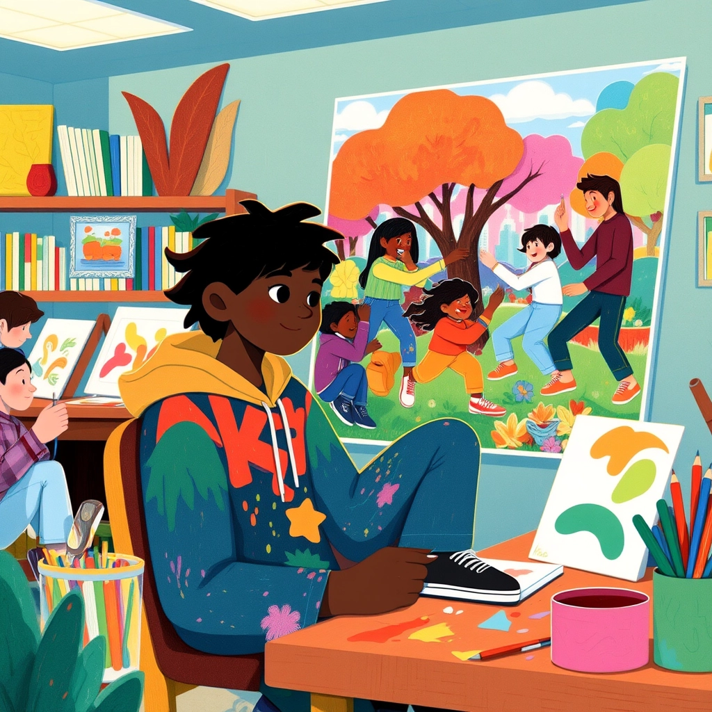[Eli](FBJQT354) was no ordinary boy. While his classmates loved football and basketball, [Eli](FBJQT354)'s heart belonged to art. His room was a vivid gallery of his dreams—walls covered with sketches and creations.