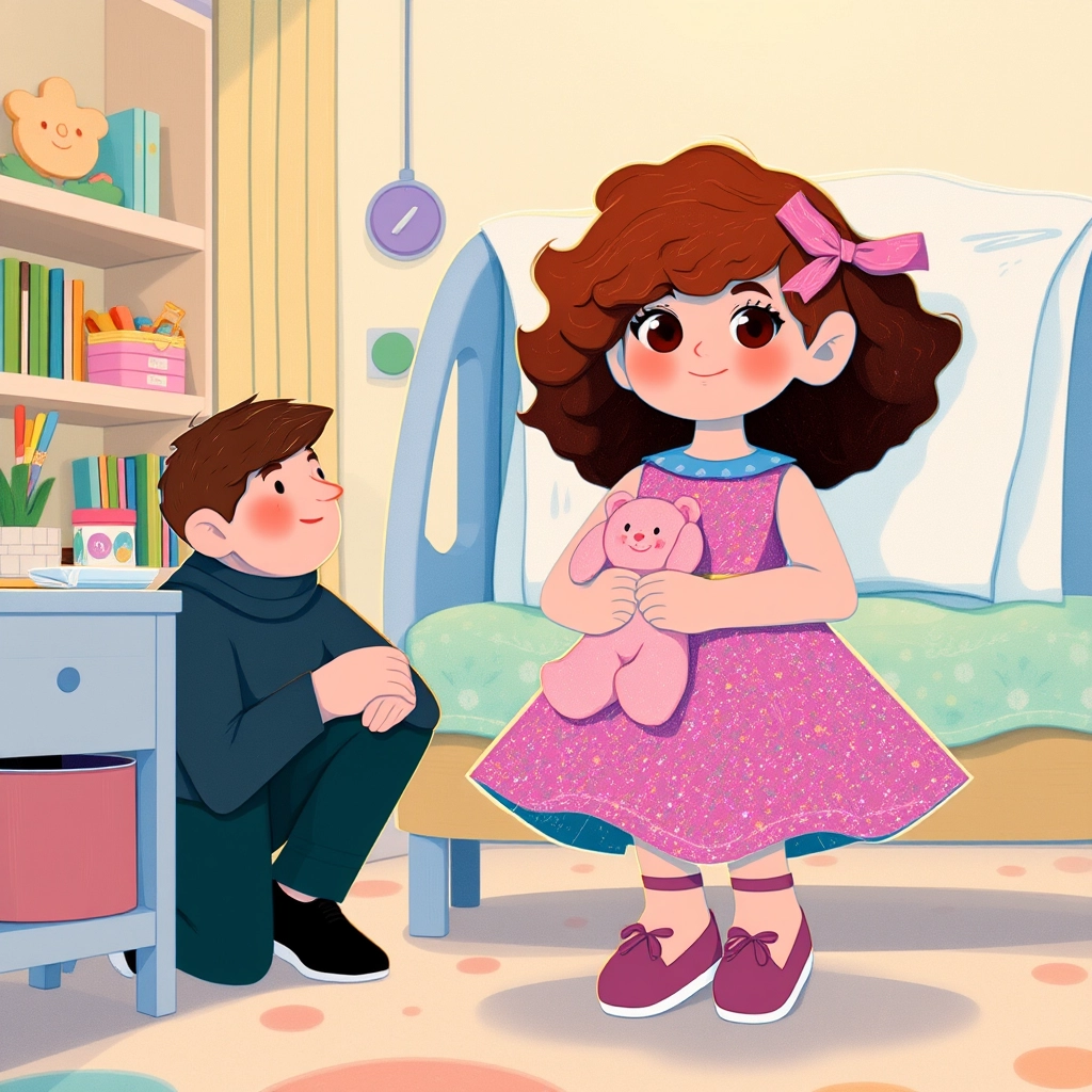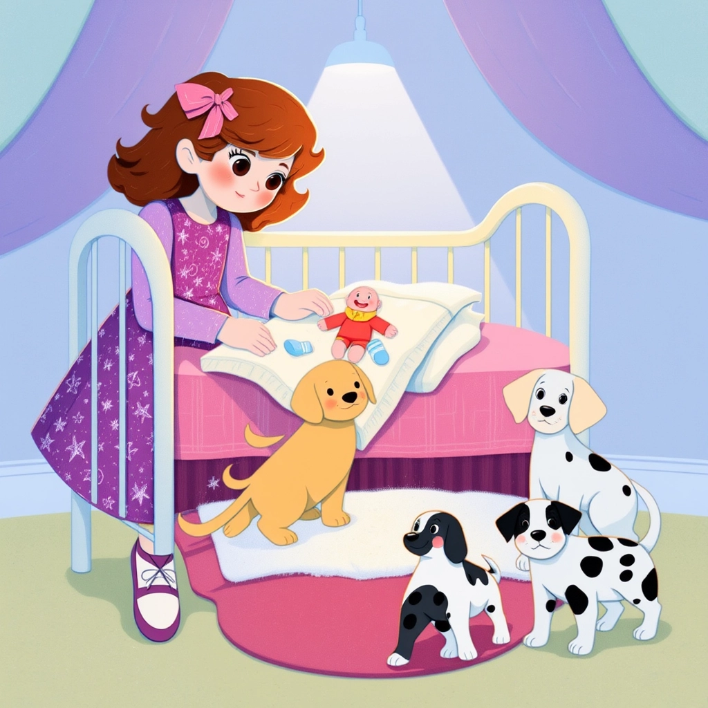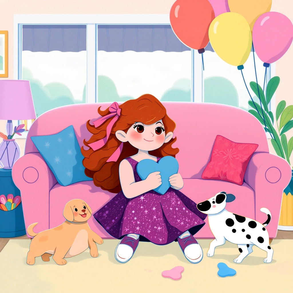 [Aubrey Rose](S2WTLHDL), with her curly auburn hair and sparkly purple dress, was always cheerful. Today, she felt extra special because she was going to meet someone new — her baby sister!