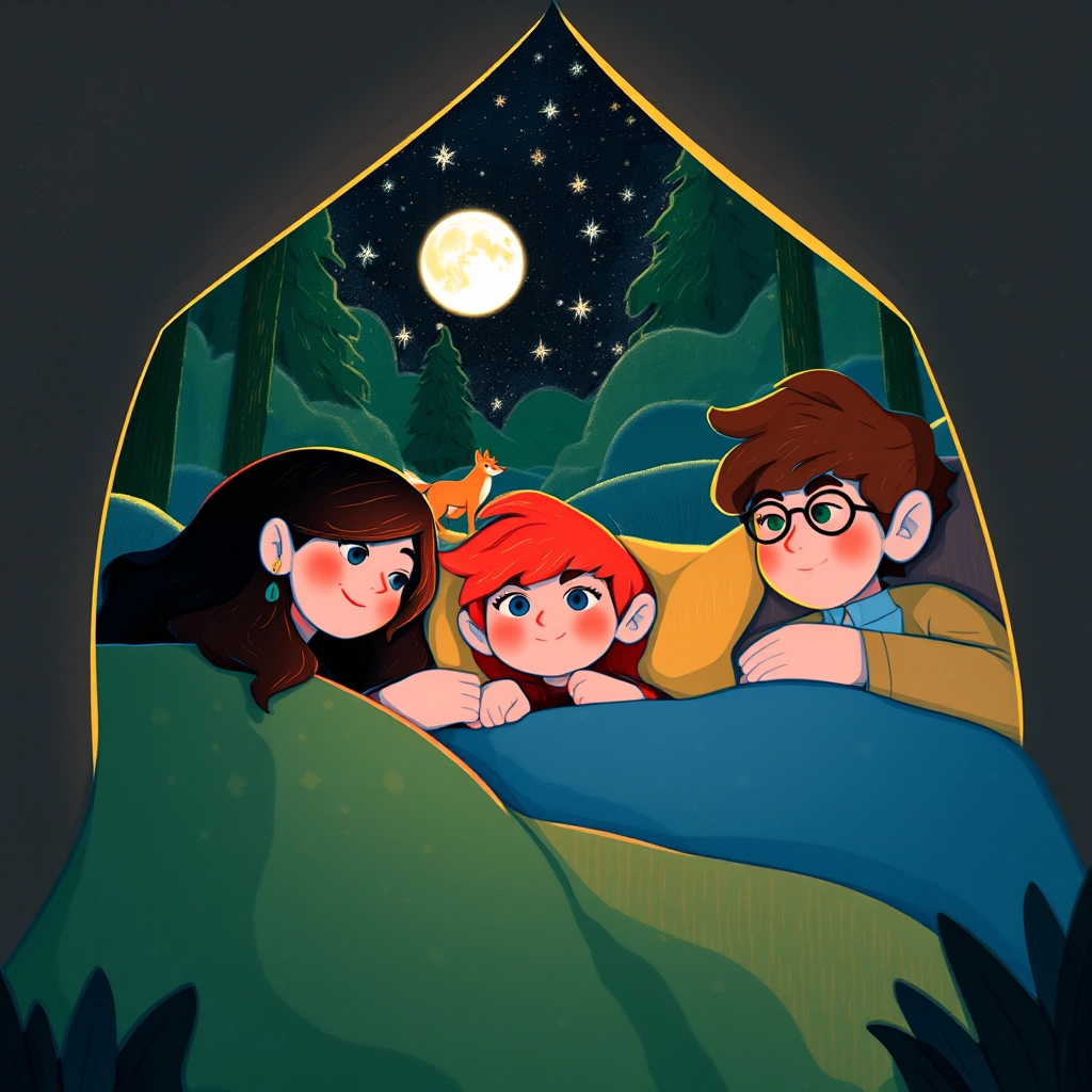 That night, they lay in their tent, watching the shapes of the trees dance in the moonlight. [Heather](323HCFQP) and [Daniel](5C2VBPNM) told [Autumn](SJSM2H6V) little stories about the stars until she fell asleep.