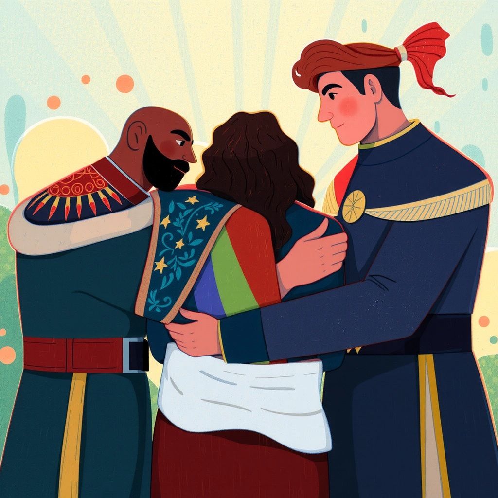 Con el ánimo renovado, los reyes agradecieron a los tres amigos y se comprometieron a llevar esperanza a su pueblo.