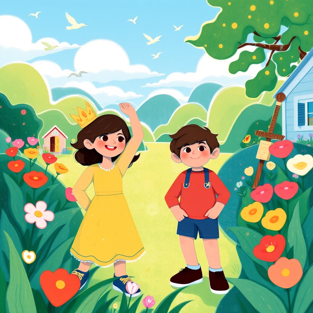 One sunny morning, [Avyanna](BLRY79RD) and [Bennett](MBYQXFVP) were exploring their backyard, which had become their magical kingdom. They loved playing pretend, dreaming up fantastical adventures together.