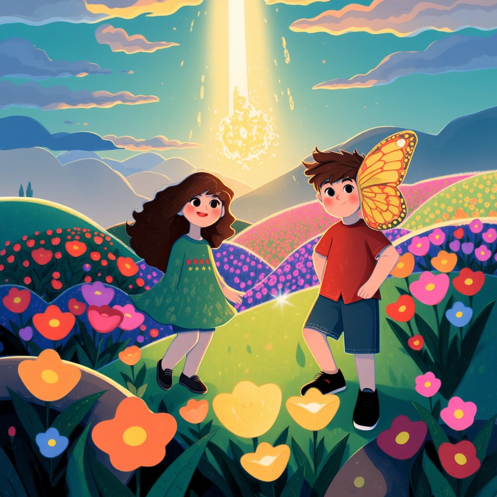 As the butterfly flew away, the meadow slowly returned to its ordinary, peaceful state. But [Avyanna](BLRY79RD) and [Bennett](MBYQXFVP) knew the adventure would stay in their memories forever.