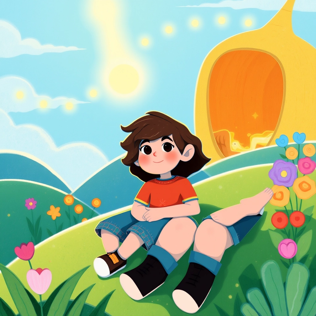 On the other side, they discovered a hidden meadow filled with glowing flowers. In the middle of the meadow was a big, shiny cocoon. 'The [Golden Butterfly](PLXR4SVJ) must be resting in there!' whispered [Bennett](MBYQXFVP) in awe.