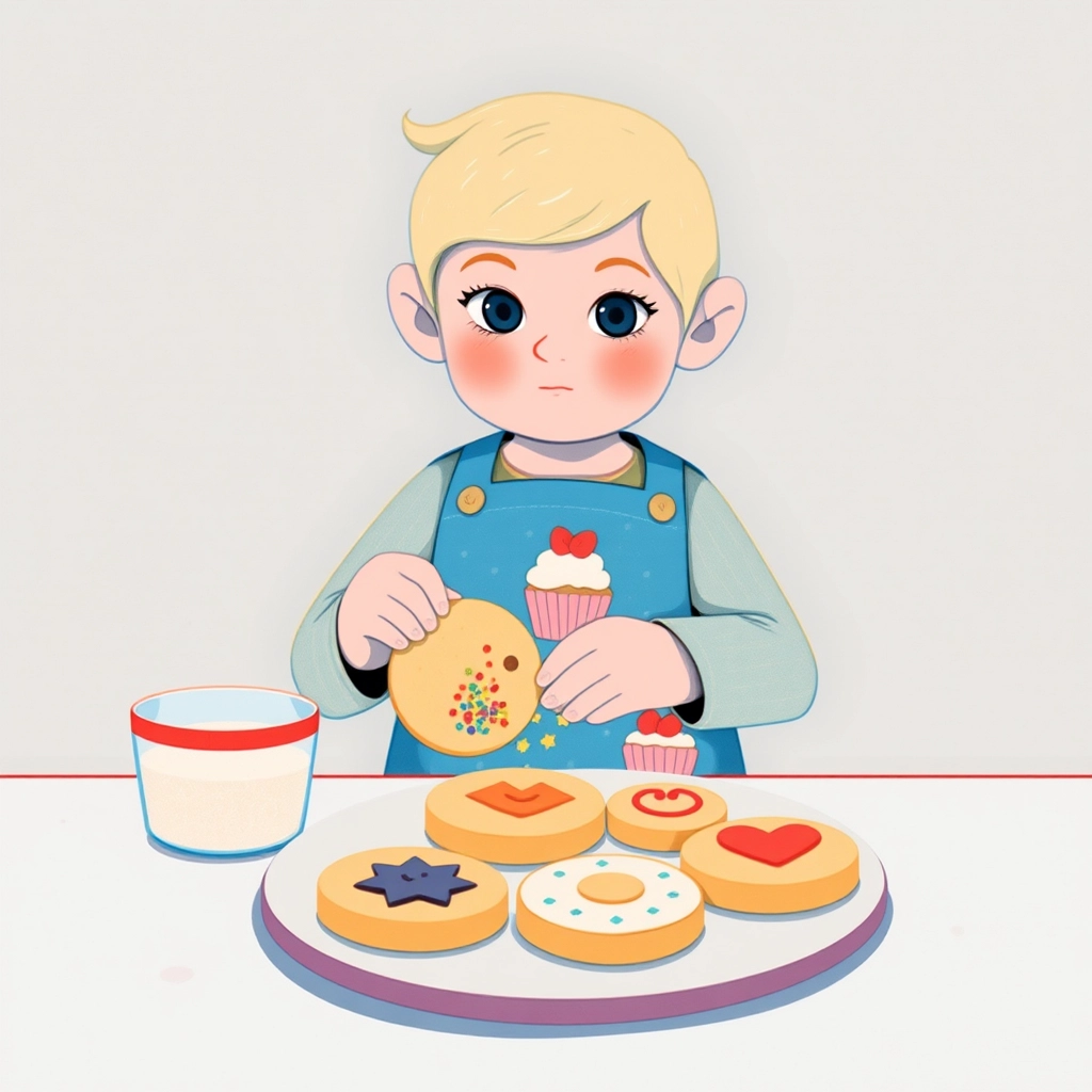 'Let's not forget dessert!' says [Baby Liam](BMY9YYZQ) as he spreads frosting on cookies. 'Mine is a smiley face!'