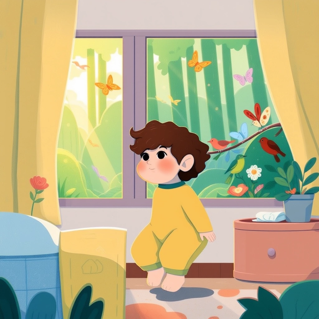 One sunny morning, [Baby Mia](M9LWXPHN) woke up and saw the forest outside her window. It looked magical, with glowing sunlight and fluttering butterflies.