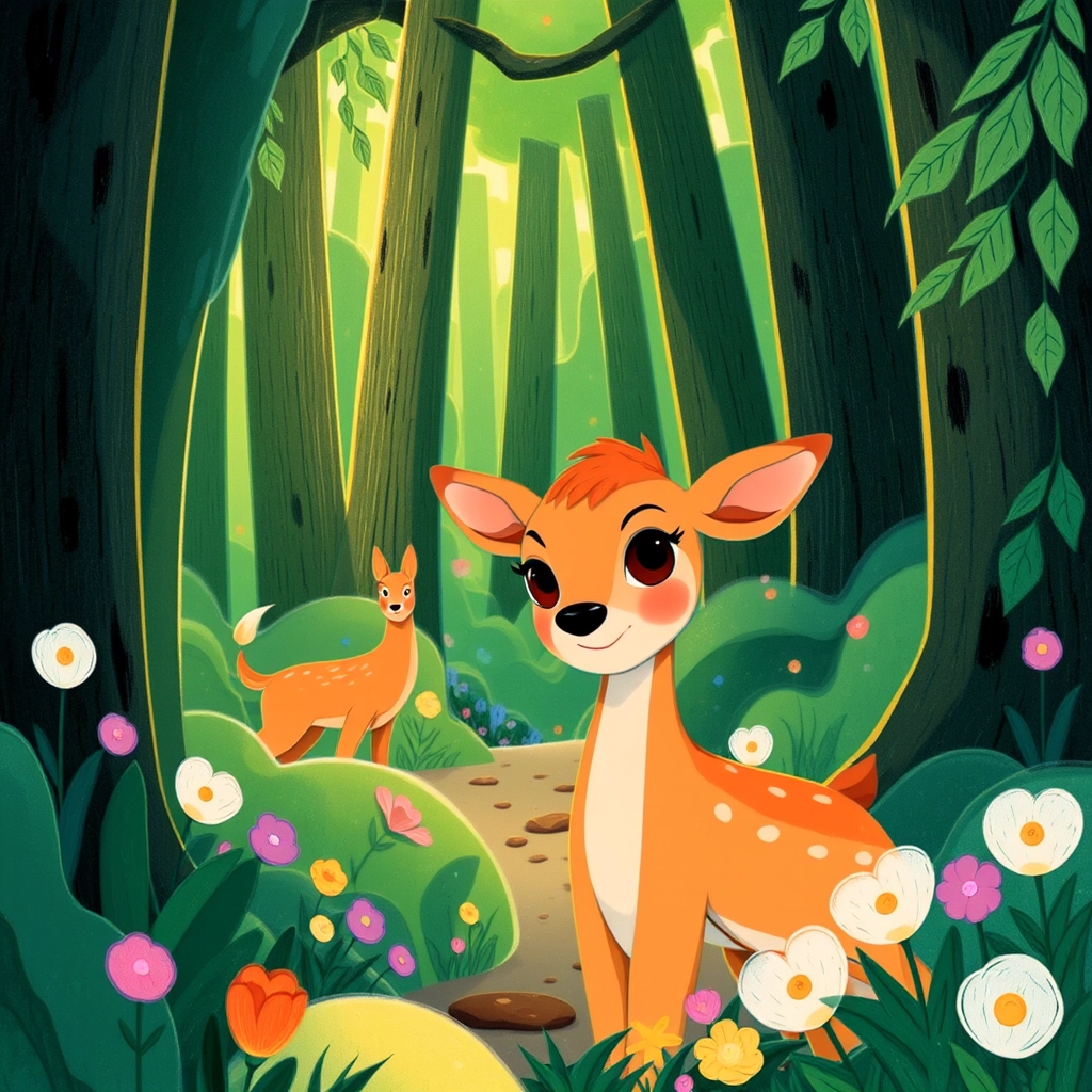 Suddenly, a soft rustling in the bushes revealed a shy deer named Daisy. Daisy showed Mia and the animals a secret path.