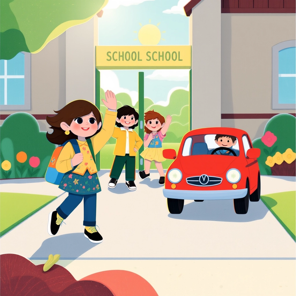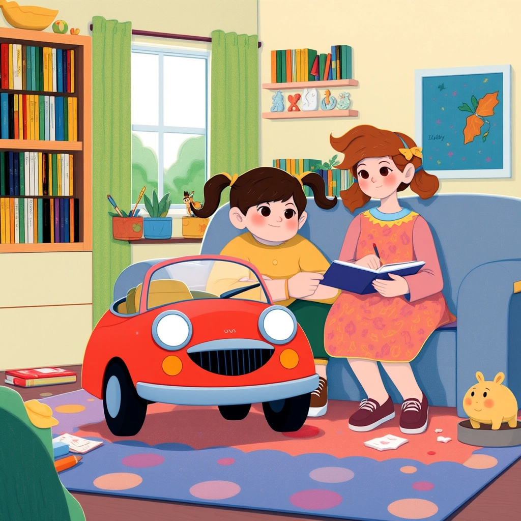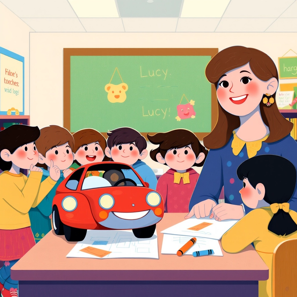One day, [Lucy](53DQNJN4) had to go to school, but [Baby](SPXMRK2N) wasn’t allowed to come along. [Baby](SPXMRK2N) felt sad, her shiny paint looking a little less bright.