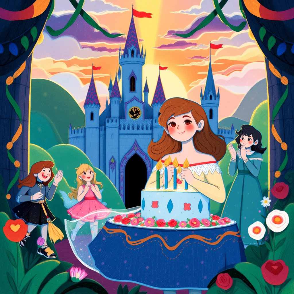 In a faraway land, nestled amidst rolling hills and sparkling streams, stood a magnificent castle where [Princess Bella](46PTCSCQ) lived. Today was her birthday, and the kingdom was bustling with excitement!