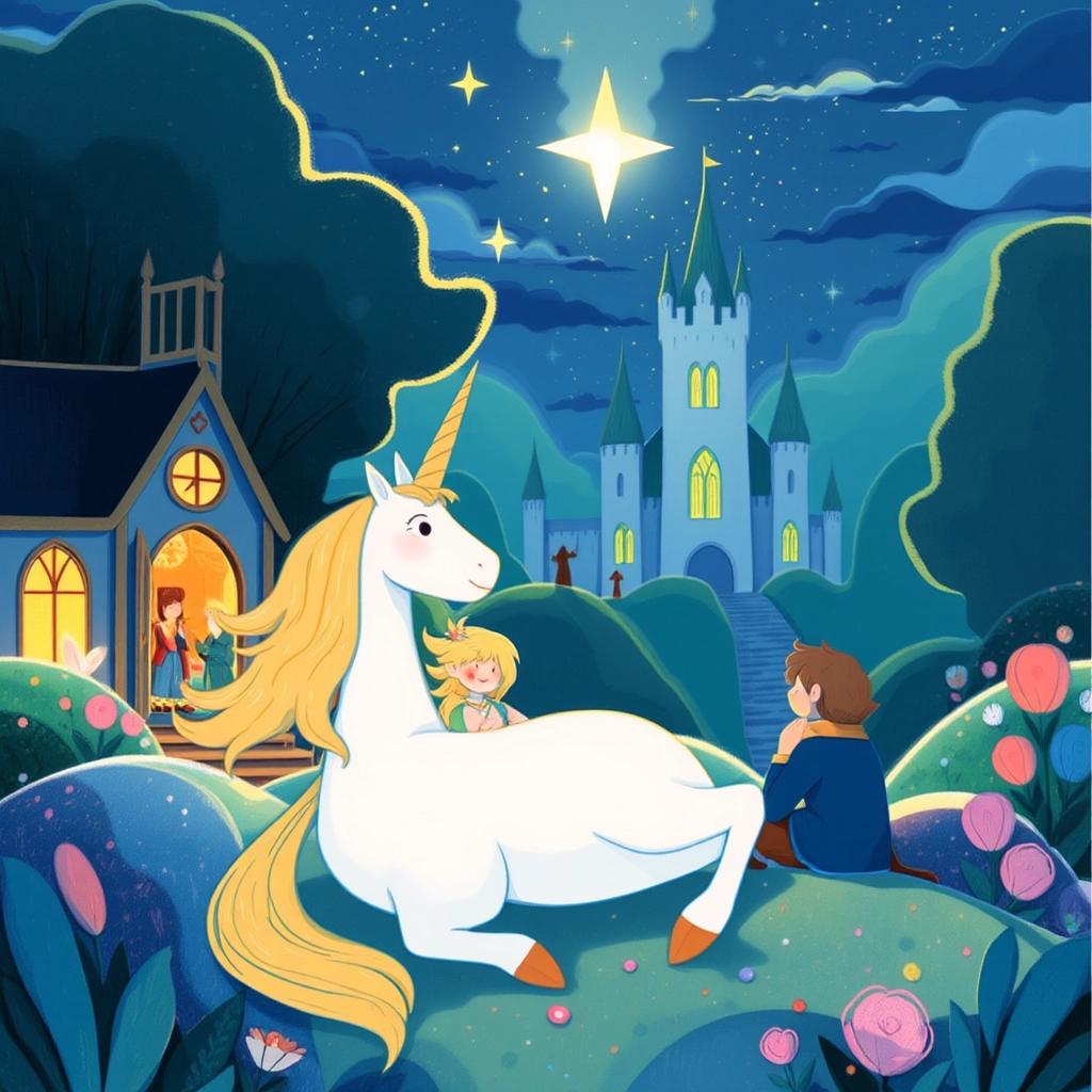 After their time in the forest, Bella and the unicorn found a hidden cave filled with shimmering treasures and sparkling gems. Bella was in awe of the beautiful mysteries of her land.