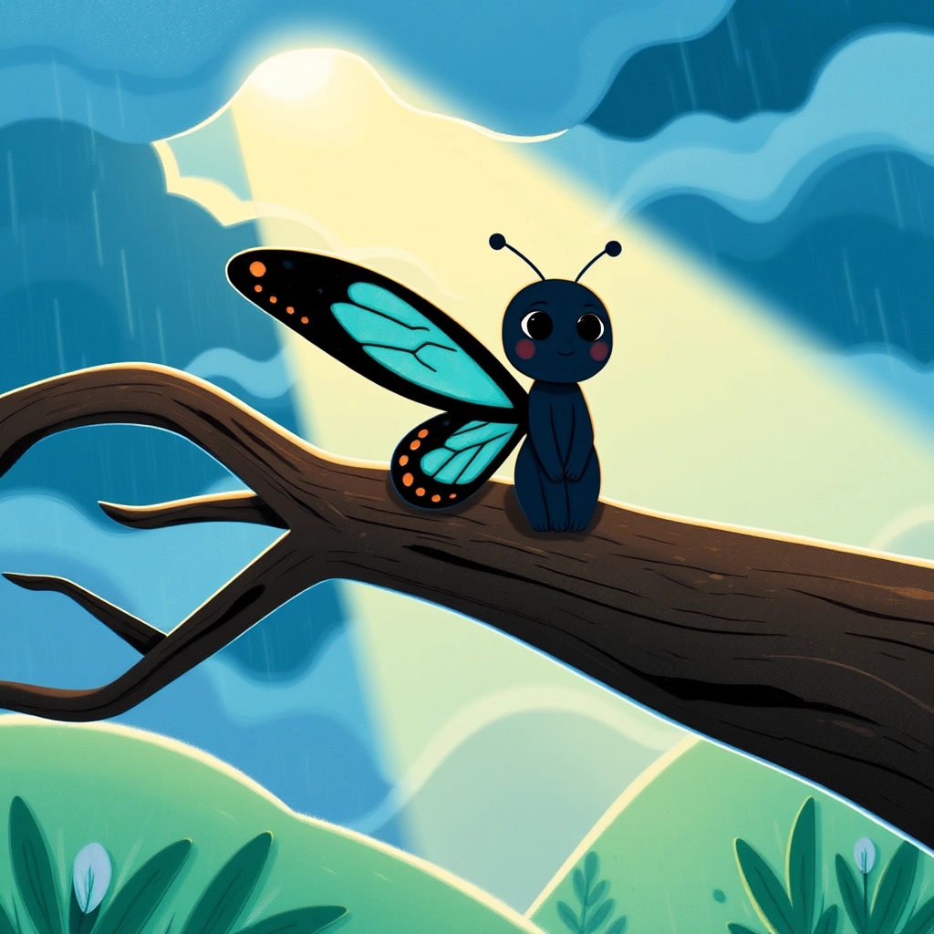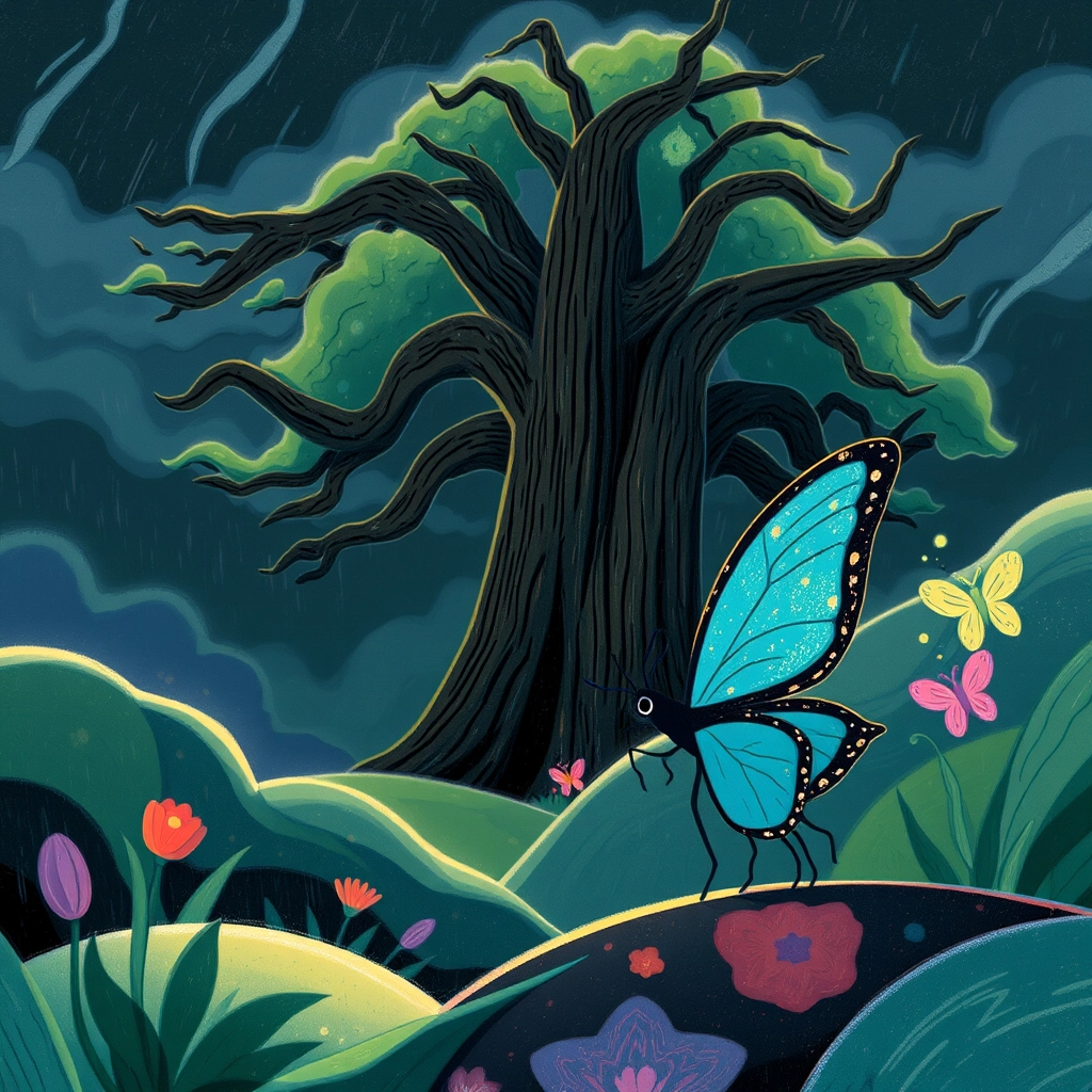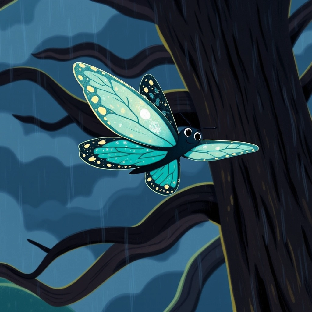 Finally, [Bella](LB9S57RB) reached the big tree, landing safely on a branch. She looked around and realized something amazing—she had done it! [Bella](LB9S57RB) had faced her fear and flown through the storm. She felt proud of herself.