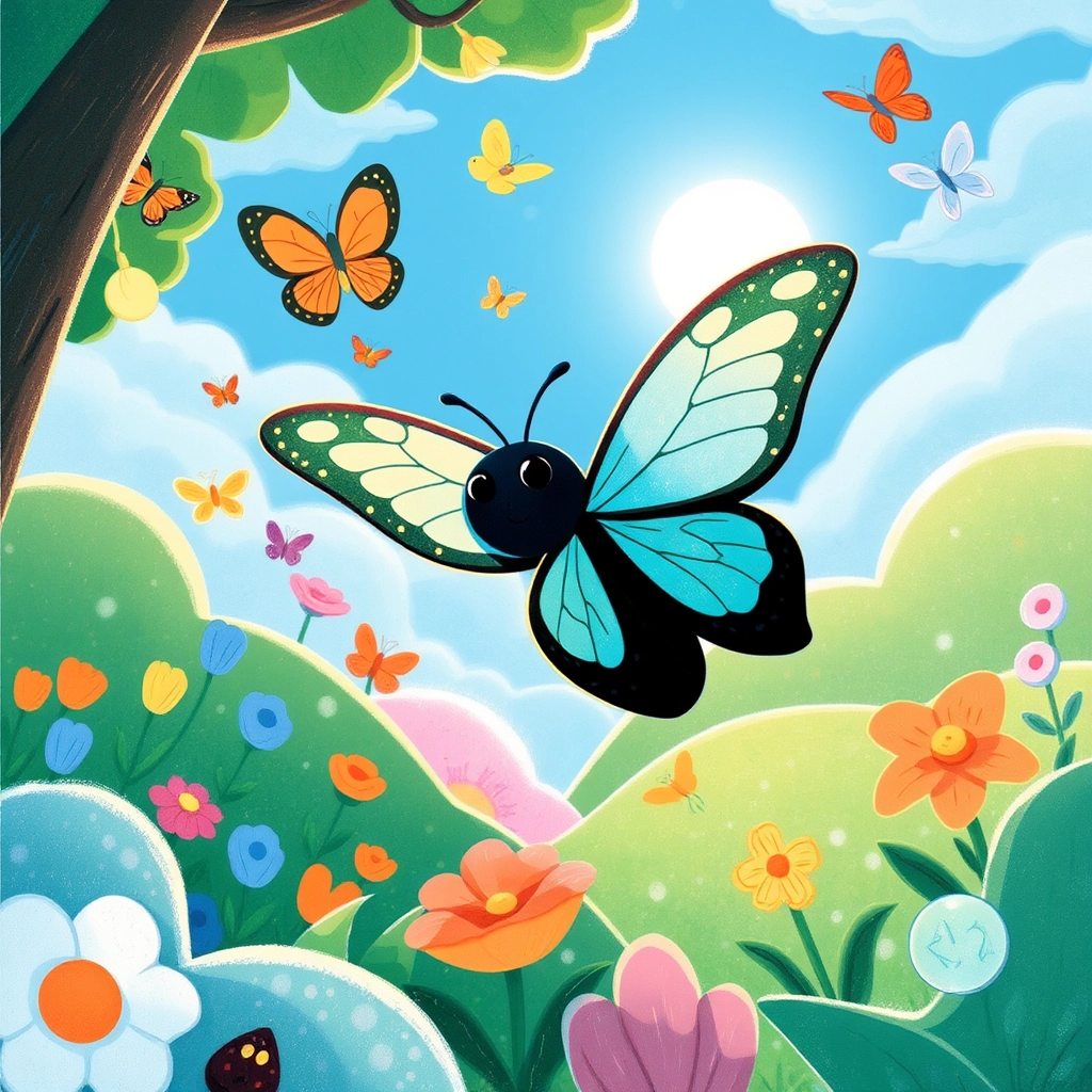 One sunny morning, the wind started to blow gently, and all the butterflies were excited. 'Let's fly to the big tree over there!' they cheered. [Bella](LB9S57RB) fluttered her wings nervously. 'I don't think I can do it,' she whispered. 'I'm too small and too scared.'