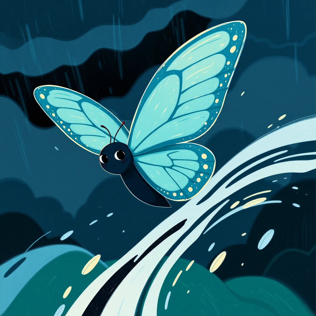 Suddenly, dark clouds began to cover the sky. A strong wind started blowing through the garden. All the butterflies flew quickly to hide, but [Bella](LB9S57RB) was stuck! The flowers she had been sitting on were now shaking, and [Bella](LB9S57RB) felt afraid. 'Oh no! What will I do?'