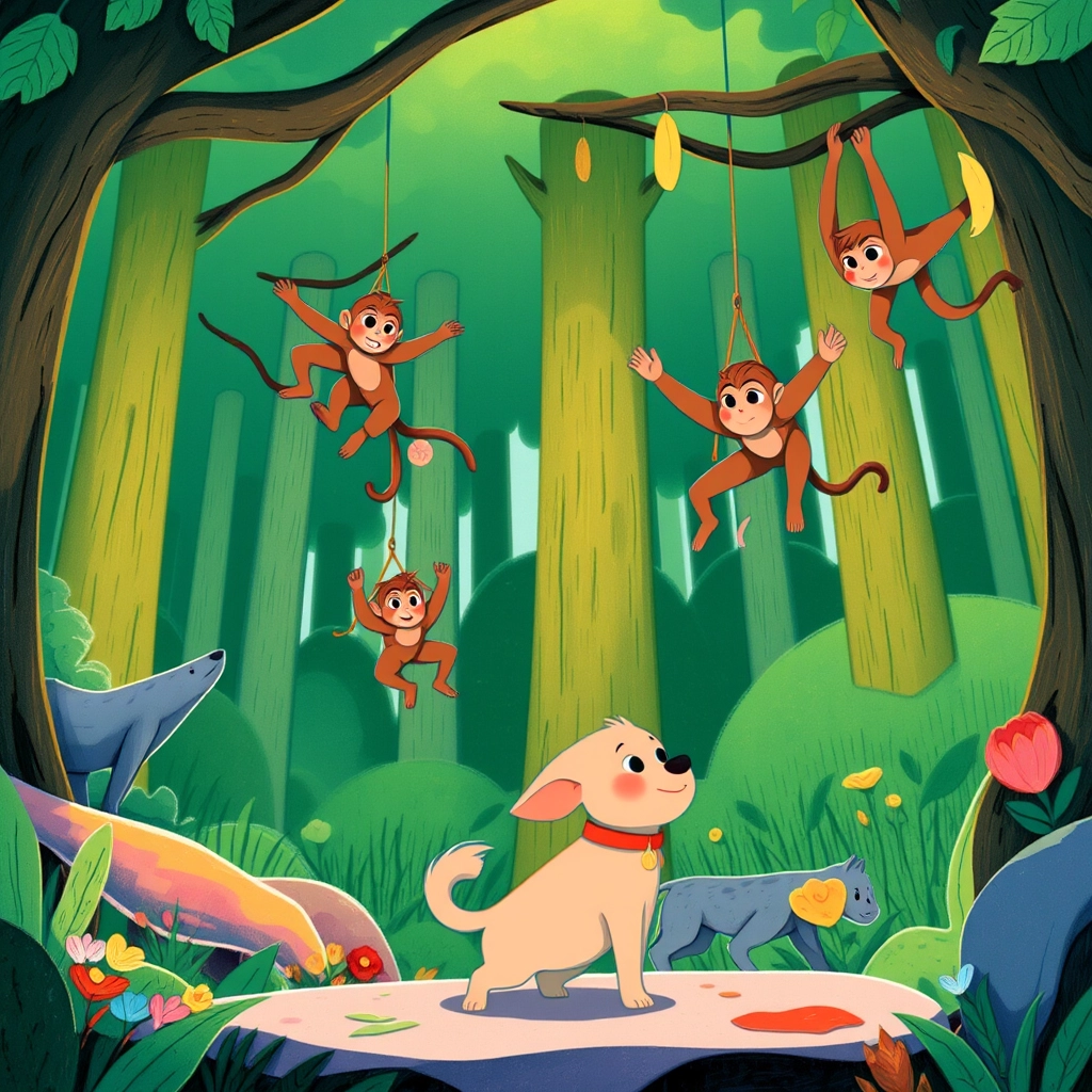 First stop: the monkey exhibit! [Bella](5YJHWVJL) giggled as the playful monkeys jumped and swung through the trees, tossing bananas back and forth.