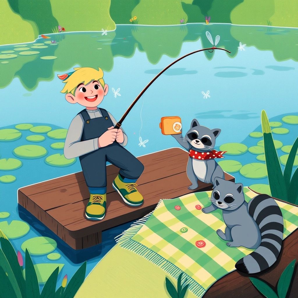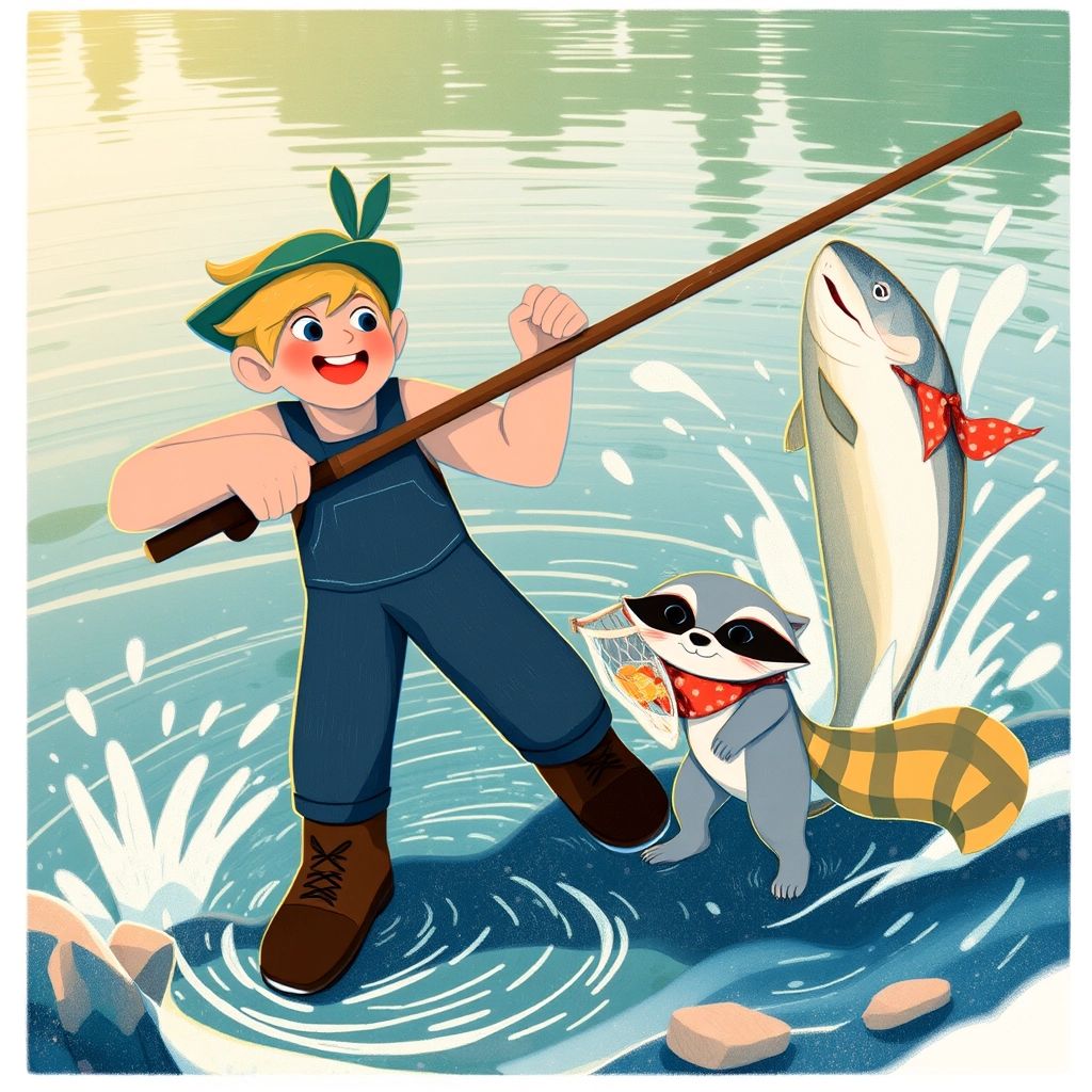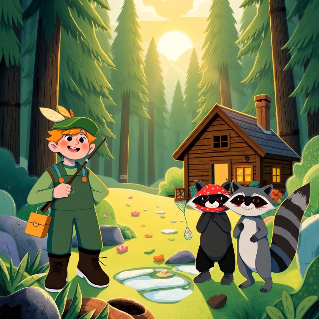 It was a sunny morning in Willow Creek Forest when [Ben](3SJ2N4Z3) packed his fishing gear. His best friend, [Emory](QD49KVZ2) the raccoon, chirped excitedly. "Today’s the day we catch the BIG one!" [Ben](3SJ2N4Z3) declared.