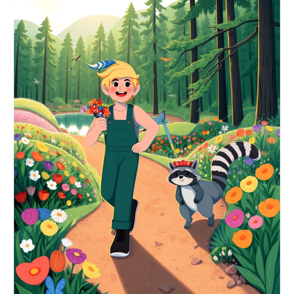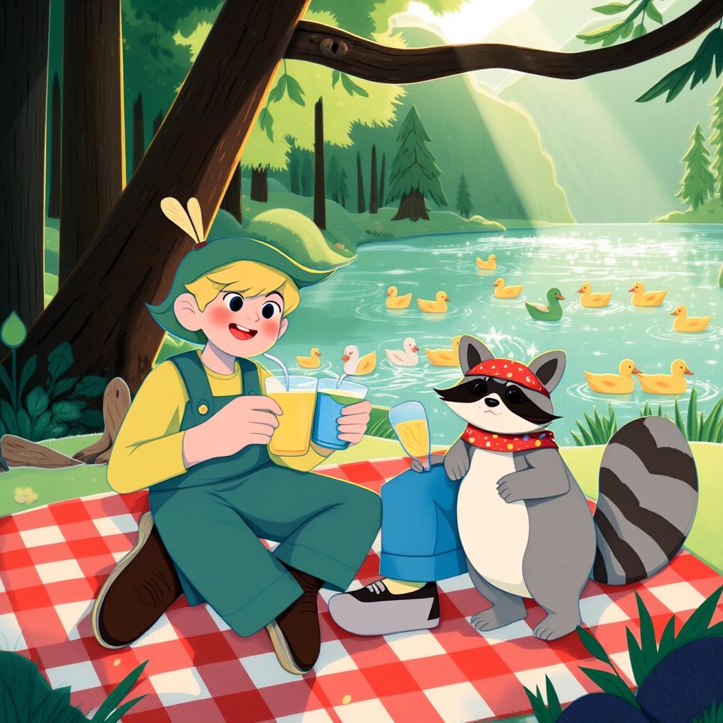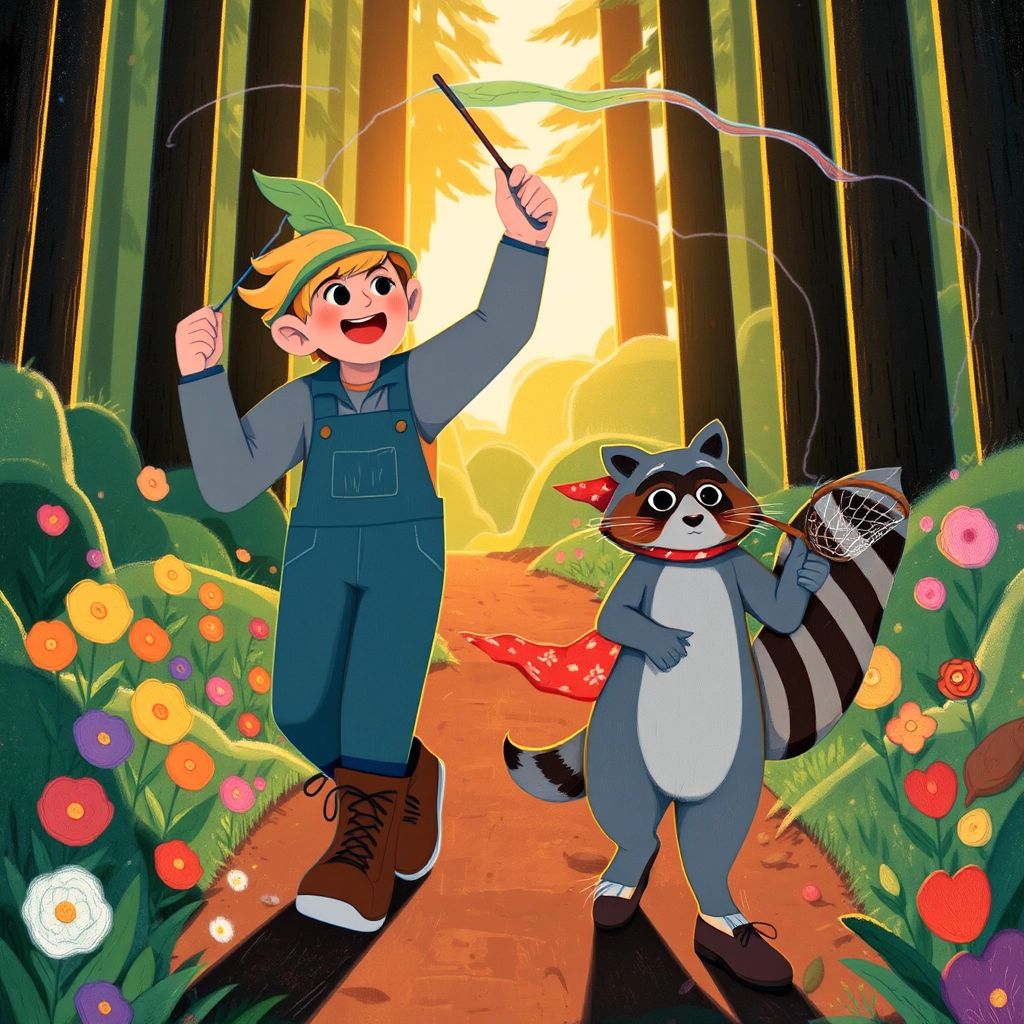 It was a sunny morning in Willow Creek Forest when [Ben](3SJ2N4Z3) packed his fishing gear. His best friend, [Emory](QD49KVZ2) the raccoon, chirped excitedly. "Today’s the day we catch the BIG one!" [Ben](3SJ2N4Z3) declared.