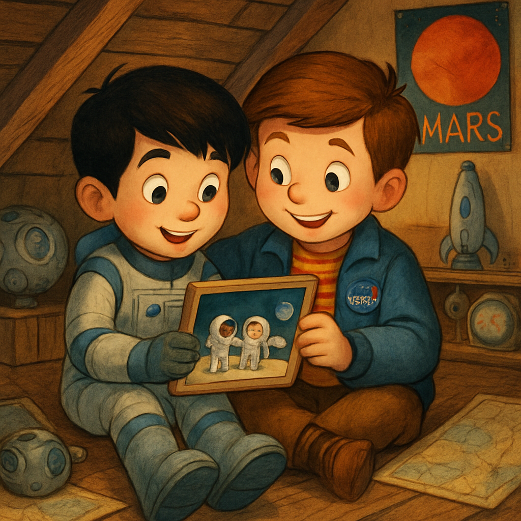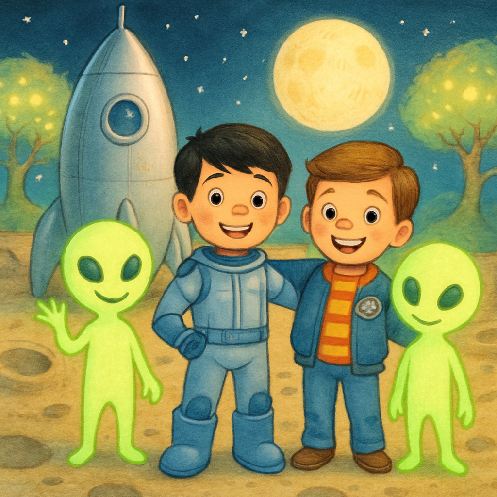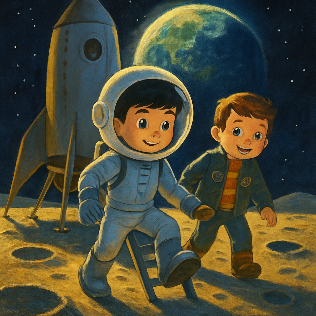 Back on Earth, [Ben](GH6JF3VF) said, 'I’ll never forget our moon adventure!' [Emory](BCSGJQWB) grinned. 'And this is only the beginning!' The two friends began planning their next big journey.