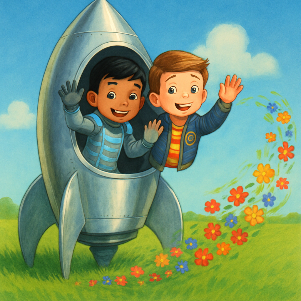 [Ben](GH6JF3VF) and [Emory](BCSGJQWB) were best friends with big dreams. One sunny afternoon, with the help of Grandpa Lou’s old books, they learned how to build a rocket. The biggest surprise? It worked!