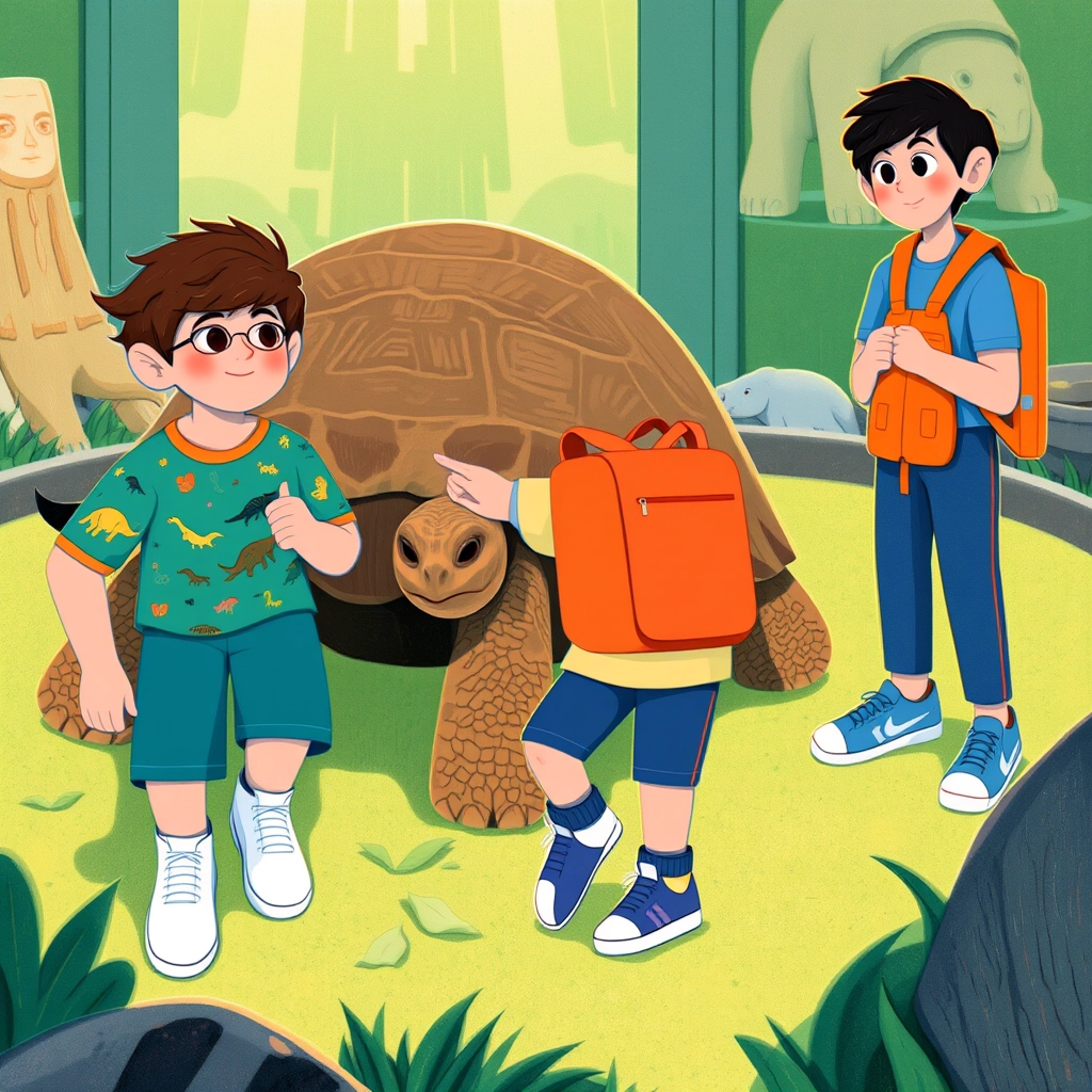 Near the Reptile House, they saw a giant tortoise slowly munching on lettuce. Its shell was like a walking tank, and it seemed to smile at them both.