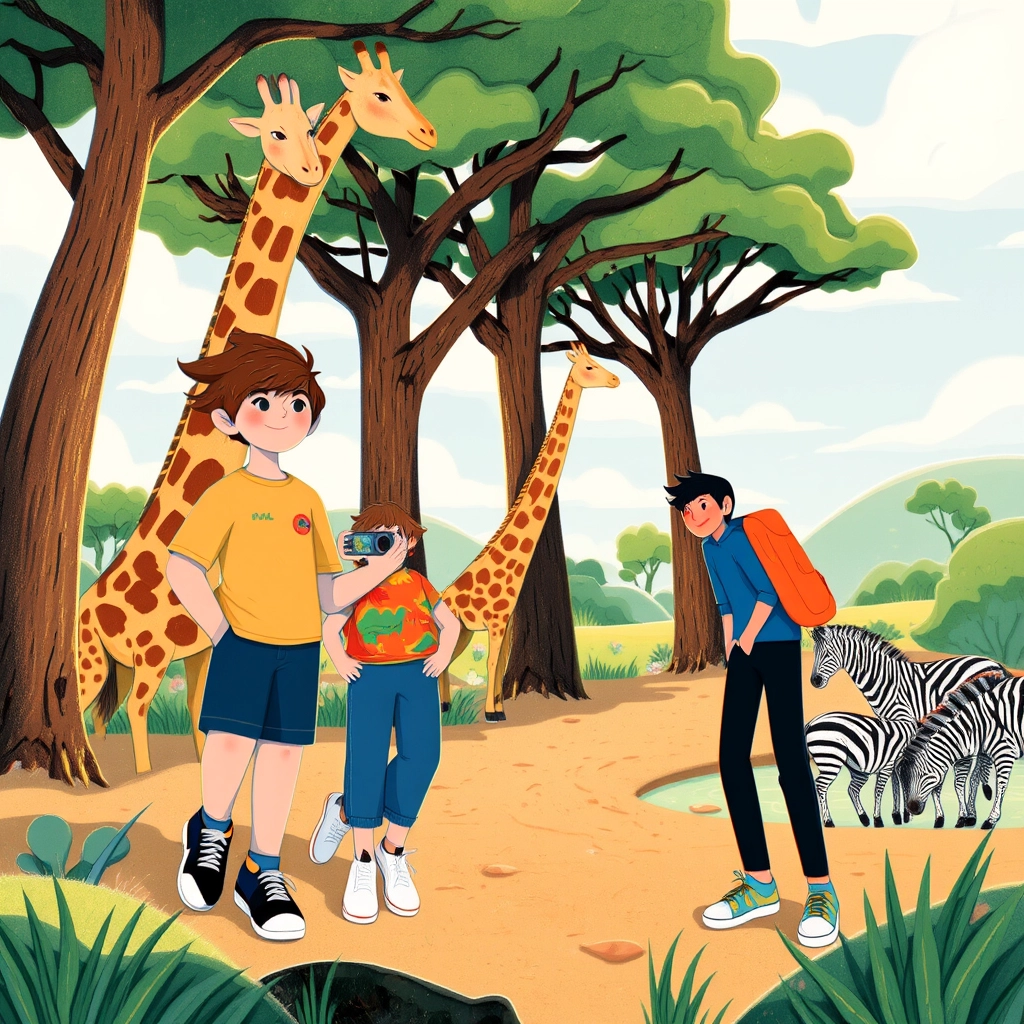 Their first stop was the Africa exhibit, where tall giraffes reached gracefully for leaves high in the trees. [Ben](TW5Z2WK4) marveled at their long necks, while [Emory](BQTW9327) snapped photos with his camera.