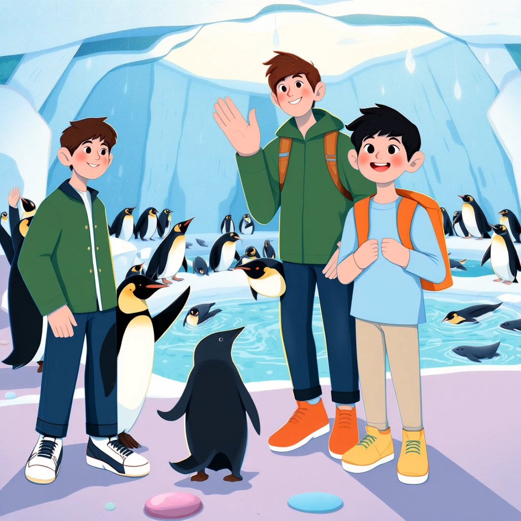 They found the penguin exhibit next. 'Look at them waddle!' [Ben](TW5Z2WK4) said, as the penguins slid on the ice and dived gracefully into the water. [Emory](BQTW9327) clapped with glee.