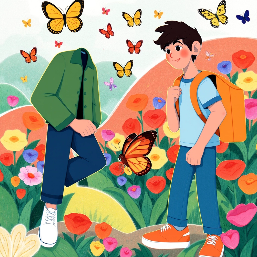 When they reached the butterfly garden, the air was filled with colors. Butterflies of all shapes and sizes floated in the warm breeze, and one even landed on [Emory](BQTW9327)'s orange sneaker!