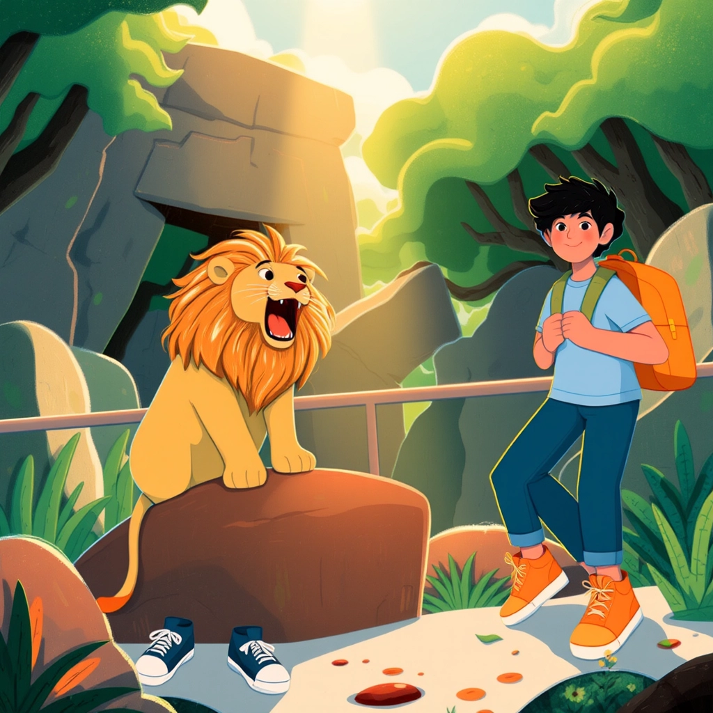 In the lion's den, they watched as the mighty lion let out a booming roar! [Ben](TW5Z2WK4) joked, 'I think he’s saying hello!' [Emory](BQTW9327) nodded, pretending to roar back.