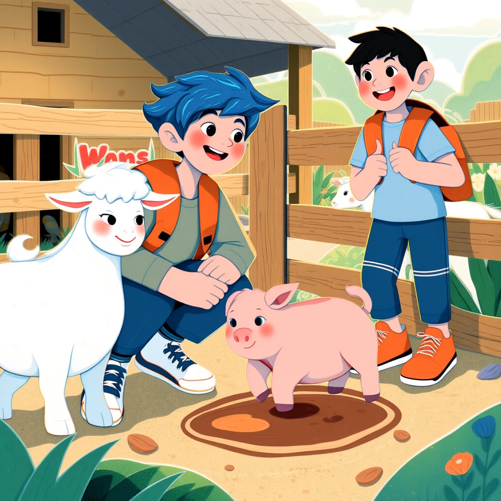 Afterward, they stopped by the Petting Zoo, where [Emory](BQTW9327) petted a fluffy goat and giggled as a lamb nibbled on his fingers. [Ben](TW5Z2WK4) watched a baby piglet rolling in the mud and chuckled.