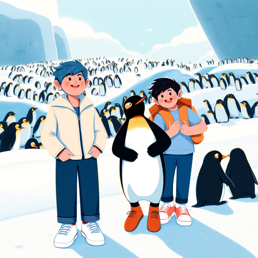 Next, they visited the penguin habitat. It was cold and icy inside! [Ben](TW5Z2WK4) explained that penguins love chilly places, and [Emory](BQTW9327) tried to waddle like the penguins as they slid on the ice.
