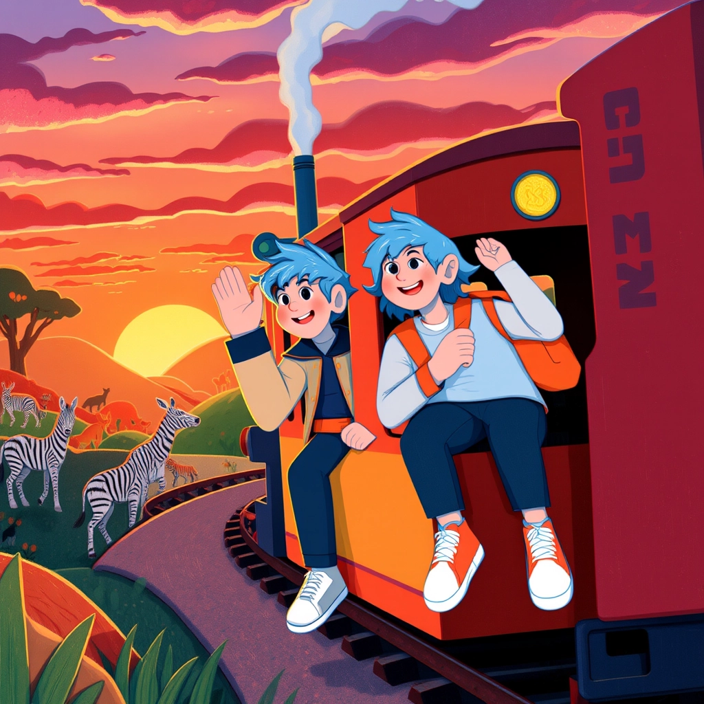 The sun began to set, painting the sky orange. They ended their visit by riding the zoo train, laughing and waving at the animals one last time.