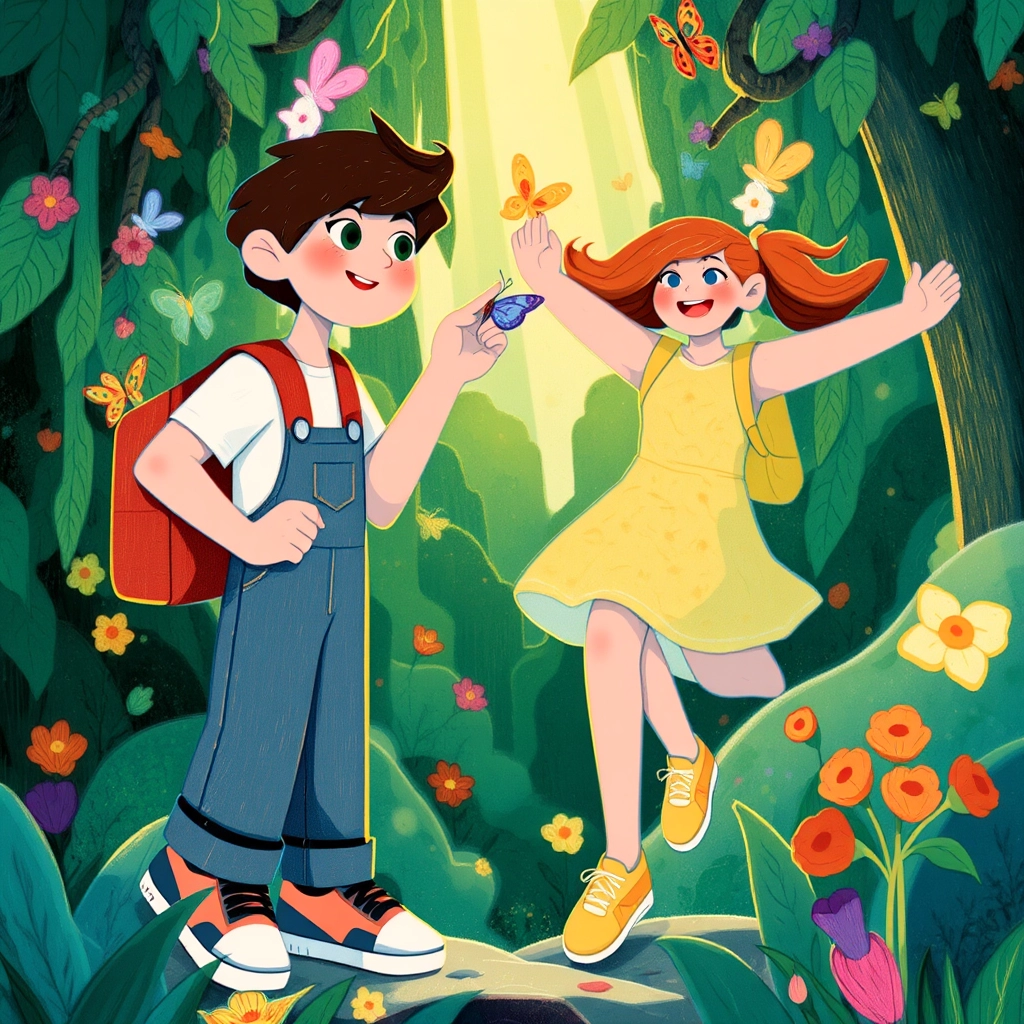 In the rainforest dome, colorful butterflies flitted around them. 'It’s like being in a painting!' said [Emory](L99QSGX9), spinning with her arms stretched, while [Ben](XBH9KXY4) stretched out his finger for a butterfly to land.