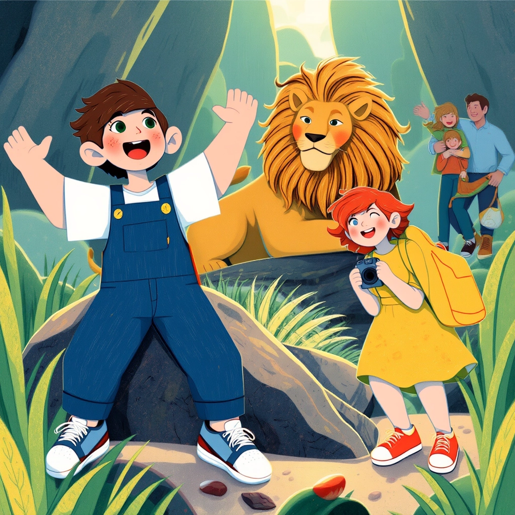 First stop: the lion habitat! The golden mane of a lion shimmered under the sun as it lounged on its rock. [Emory](L99QSGX9) captured a photo while [Ben](XBH9KXY4) roared dramatically, making nearby kids giggle.
