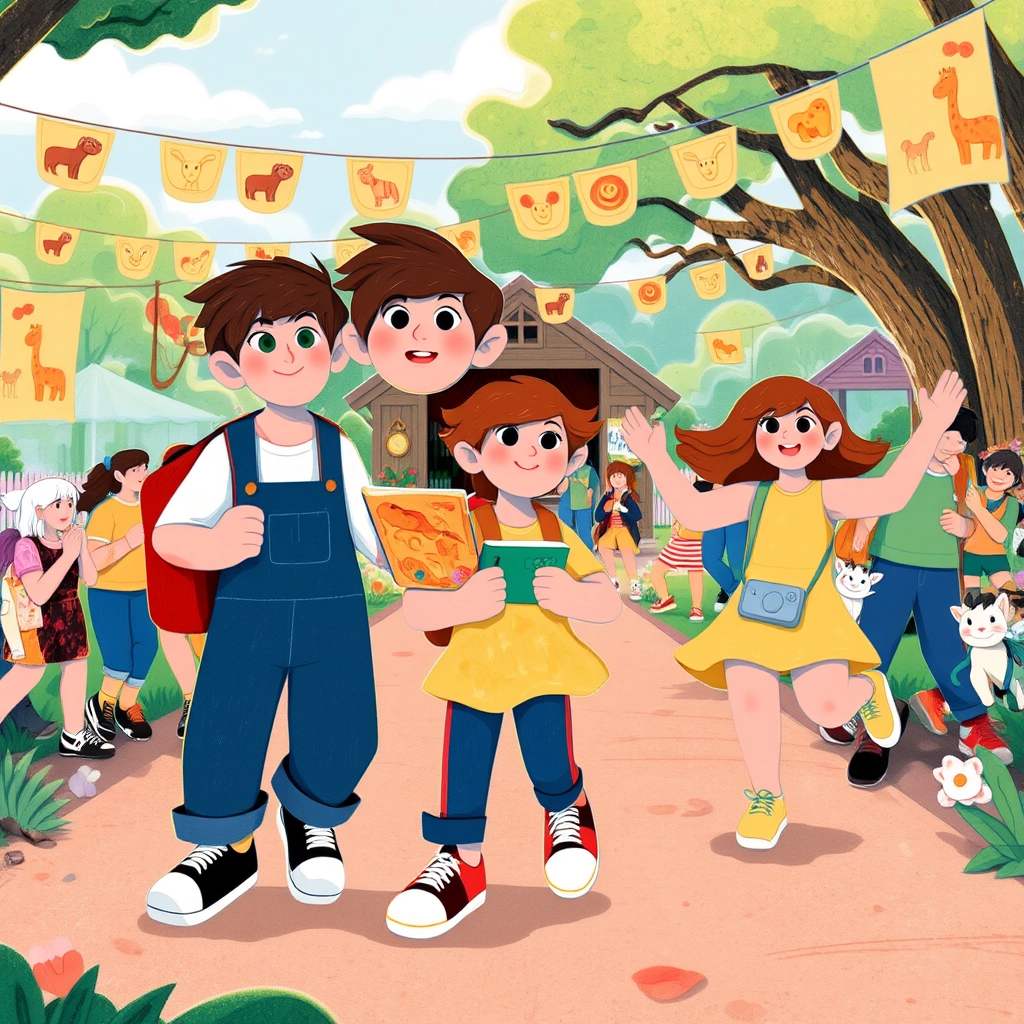 [Ben](XBH9KXY4) and [Emory](L99QSGX9) clutched their zoo maps tightly as they passed through the colorful arch. 'Let's find the lions first!' [Ben](XBH9KXY4) exclaimed, adjusting his loose straps. [Emory](L99QSGX9) spun in excitement, holding up her camera. The adventure had begun!
