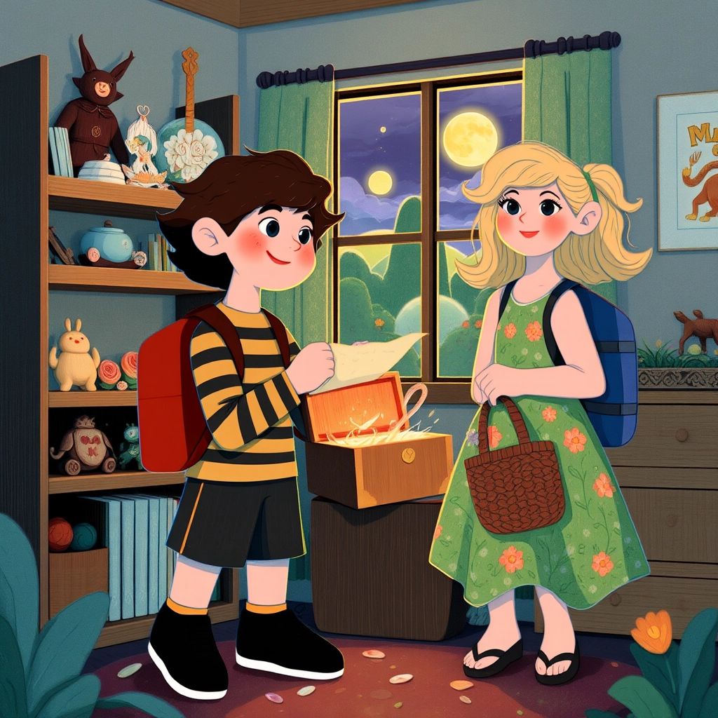 Back home, [Ben](B94SZWPG) and [Greta](SR5JT6C4) placed their treasure chest on a special shelf. "Our greatest adventures always start with curiosity," [Ben](B94SZWPG) said. [Greta](SR5JT6C4) hugged her brother and added, "And with each other!" They both smiled, ready to dream of their next journey.