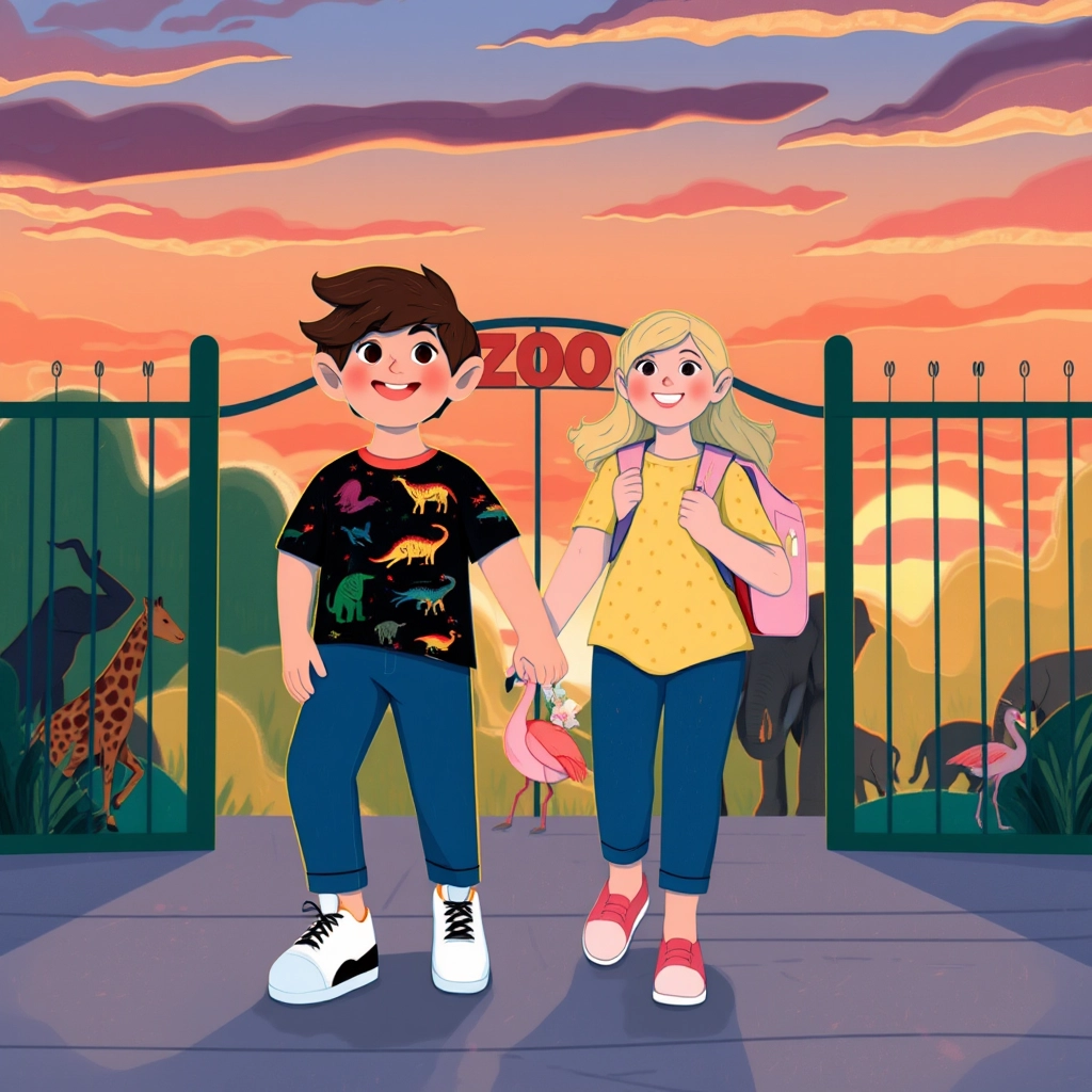 As the sun began to set, [Ben](TW5Z2WK4) and [Greta](9TGJ4HMP) left the zoo, waving goodbye to all their new animal friends. 'That was the best day ever!' said [Ben](TW5Z2WK4). 'Yes, and I learned so much about the animals!' [Greta](9TGJ4HMP) added as they walked home, tired but happy.