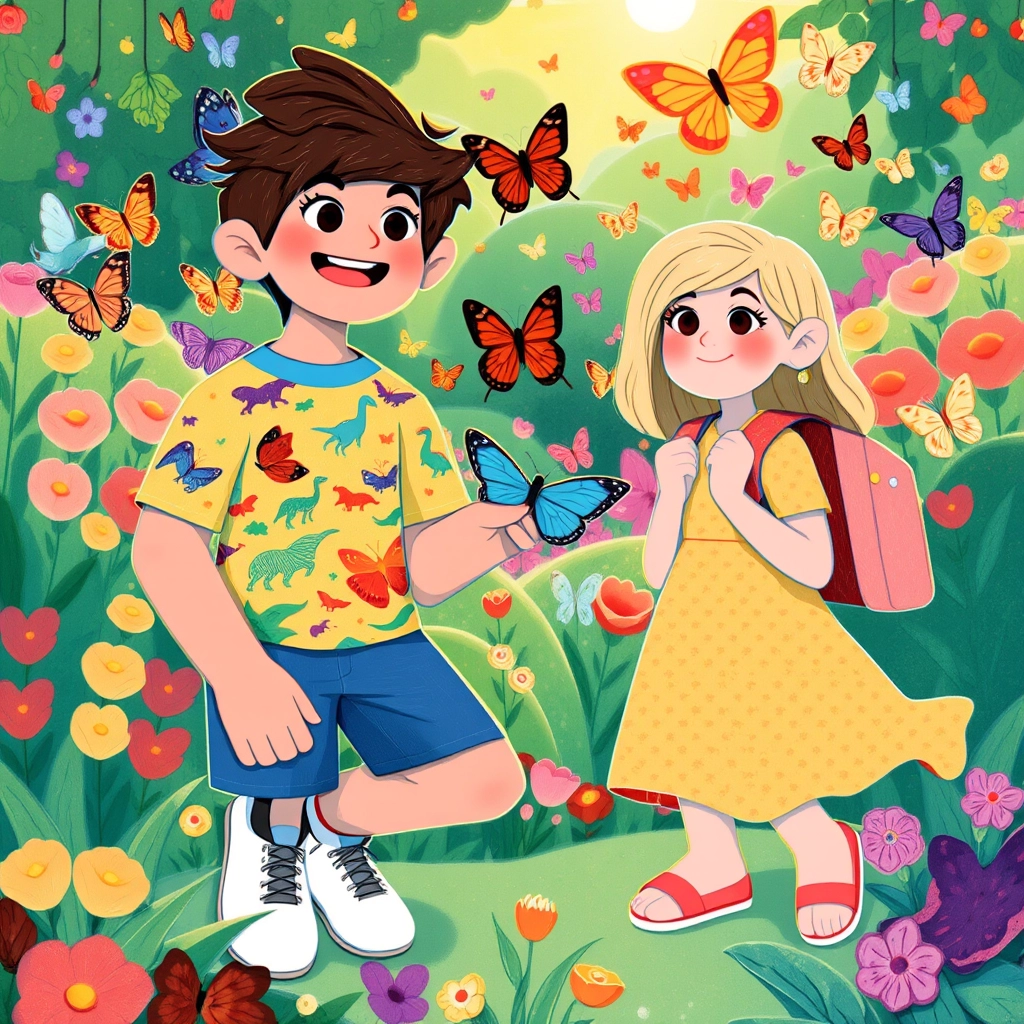 Their last stop was the butterfly garden. Colorful butterflies of every shape and size floated around them. One even landed on [Greta](9TGJ4HMP)’s finger! 'They’re so light, it tickles!' she said, giggling, while [Ben](TW5Z2WK4) tried to gently coax one onto his hand too.