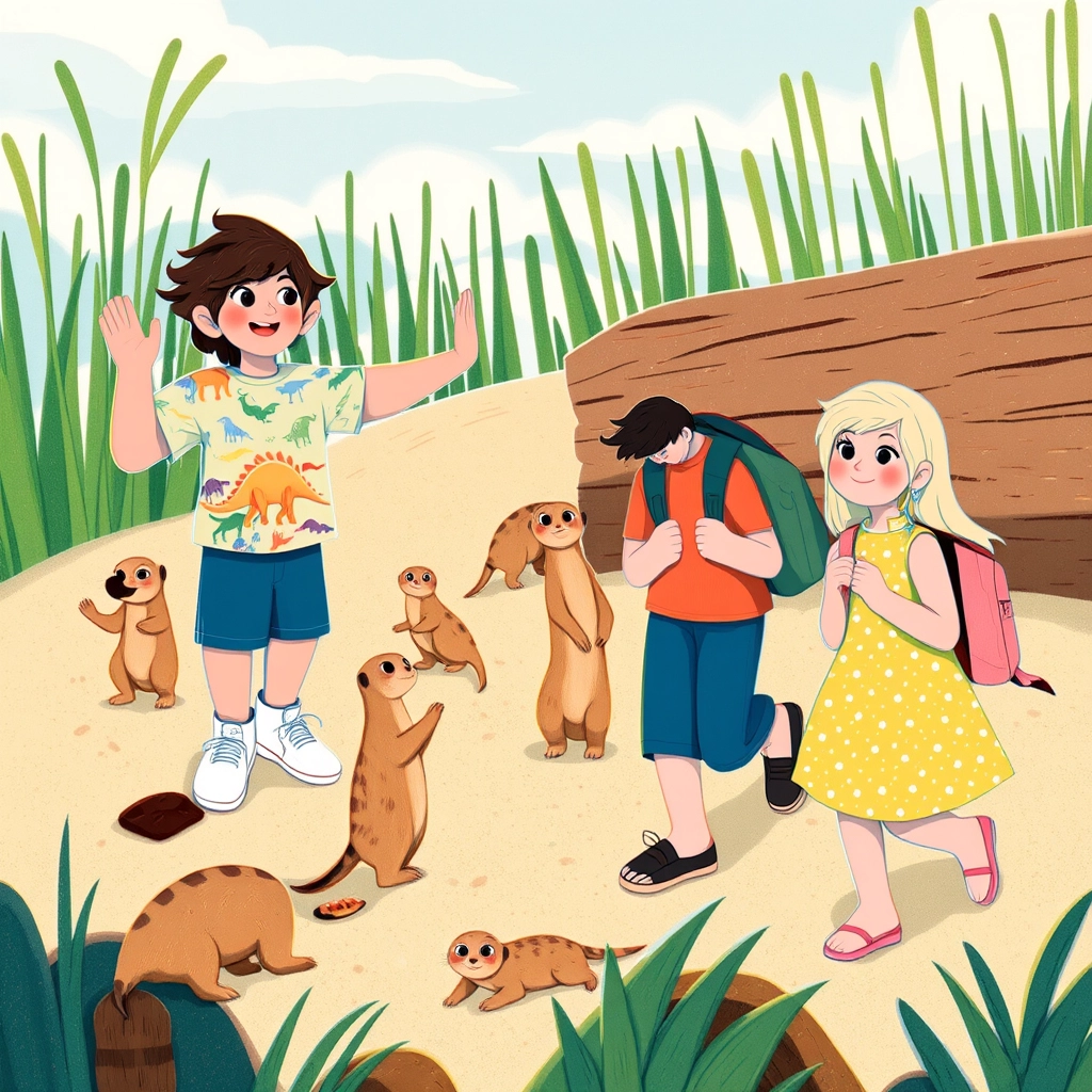 At the meerkat enclosure, [Ben](TW5Z2WK4) and [Greta](9TGJ4HMP) stayed extra quiet to watch the curious creatures pop up and dig through the sand. One meerkat even seemed to wave at them! 'I think it likes us!' [Ben](TW5Z2WK4) whispered, excitedly.