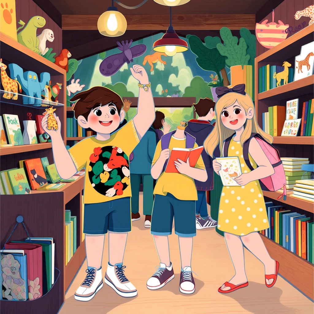 At the gift shop, [Ben](TW5Z2WK4) picked a keychain with a giraffe, and [Greta](9TGJ4HMP) chose a notebook with animal prints. 'We can write about all the animals we saw today!' [Greta](9TGJ4HMP) suggested. 'And maybe their secret magical powers,' [Ben](TW5Z2WK4) added with a wink.